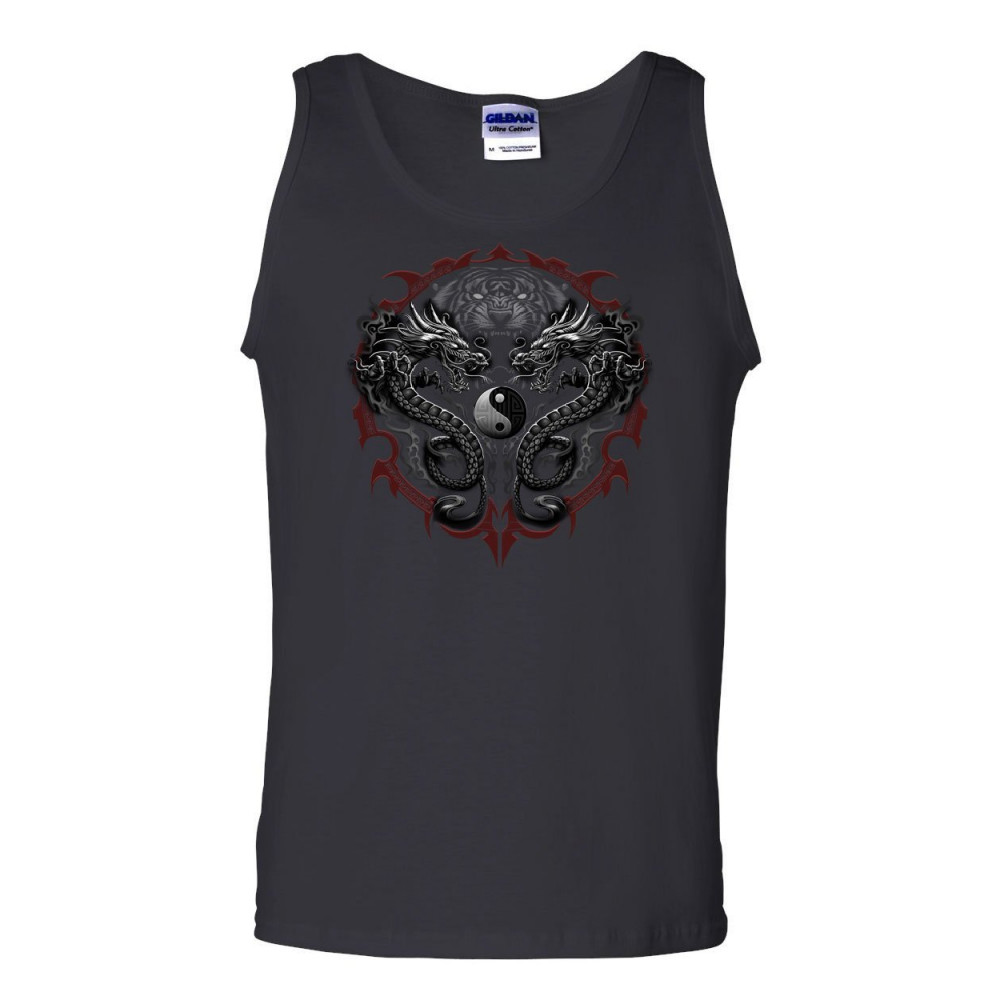 BENGAL RISING DRAGONS tank top asian art wild tiger yin and yang sleeveless black