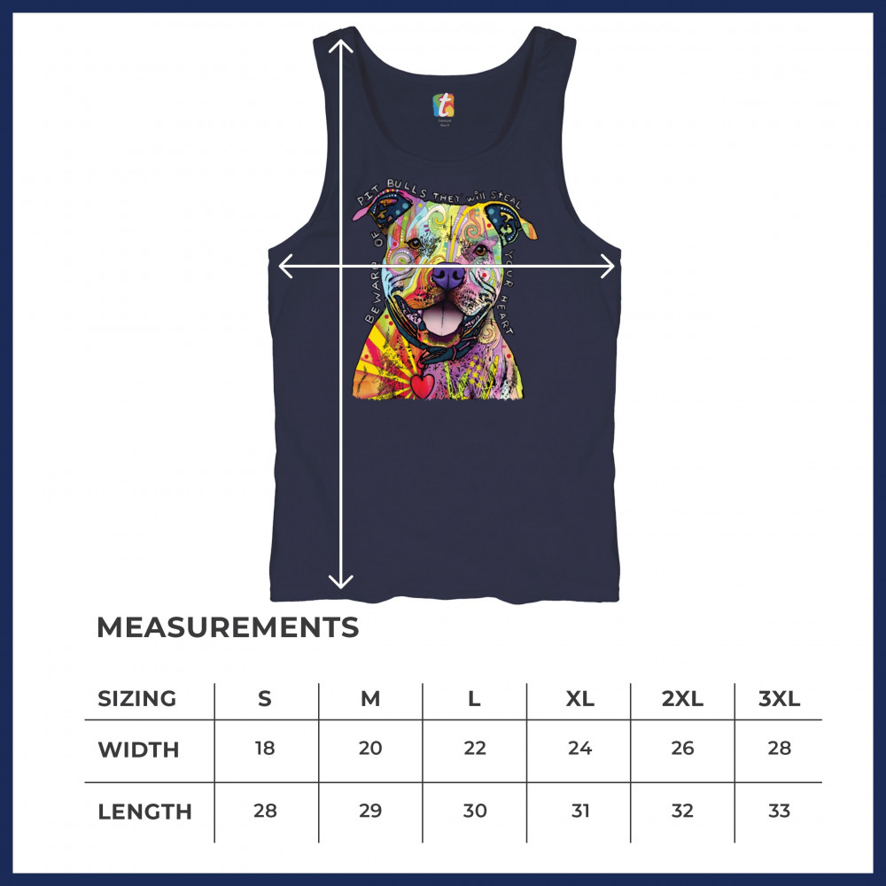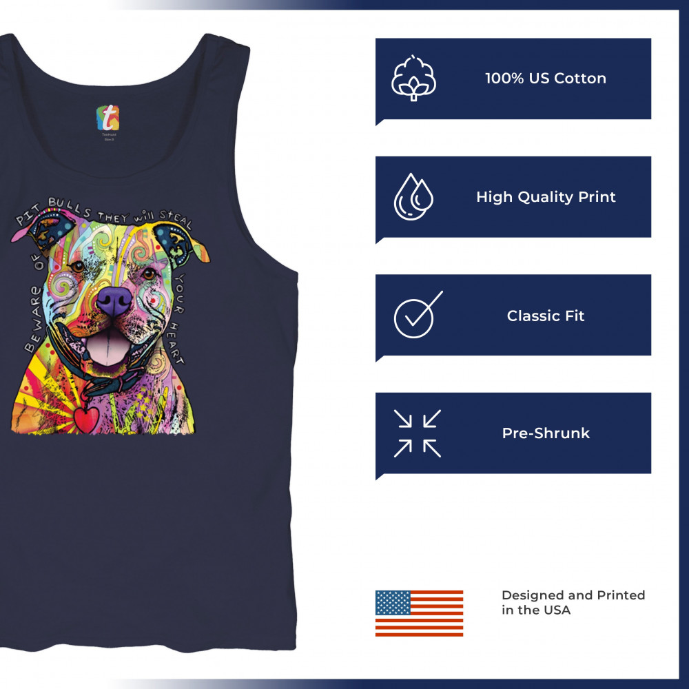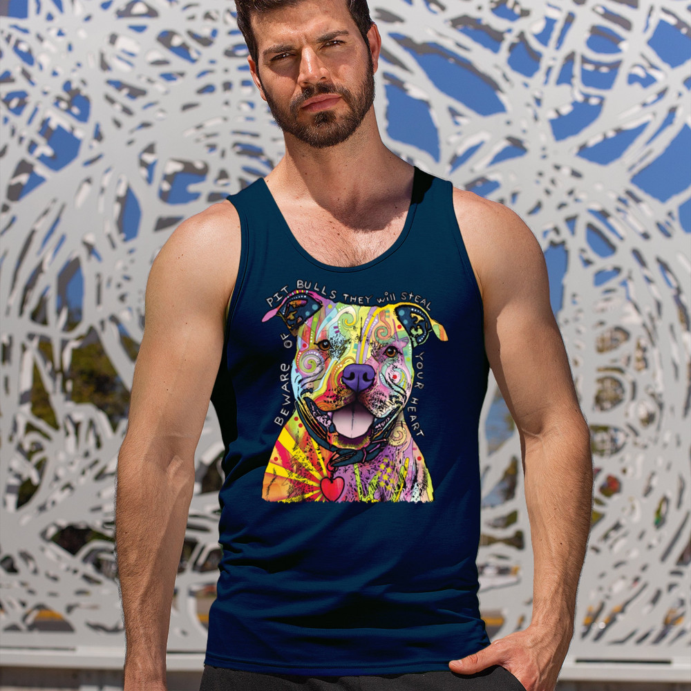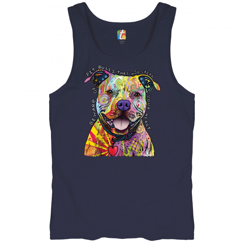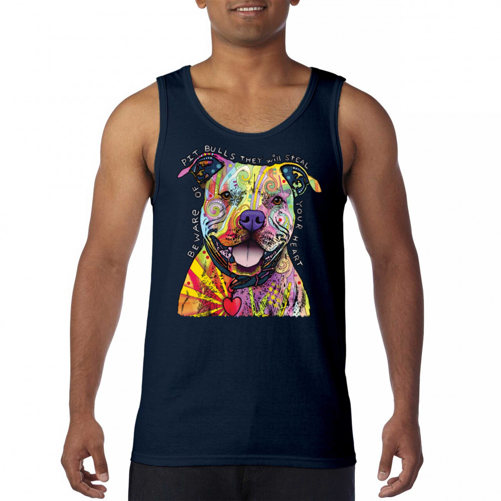 BEWARE OF PIT BULLS tank top dean russo art colorful cute dog men's top navy blue