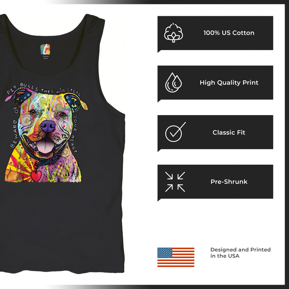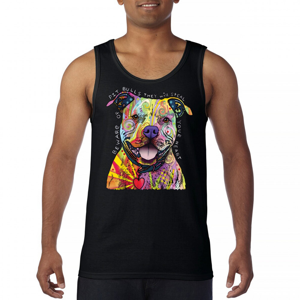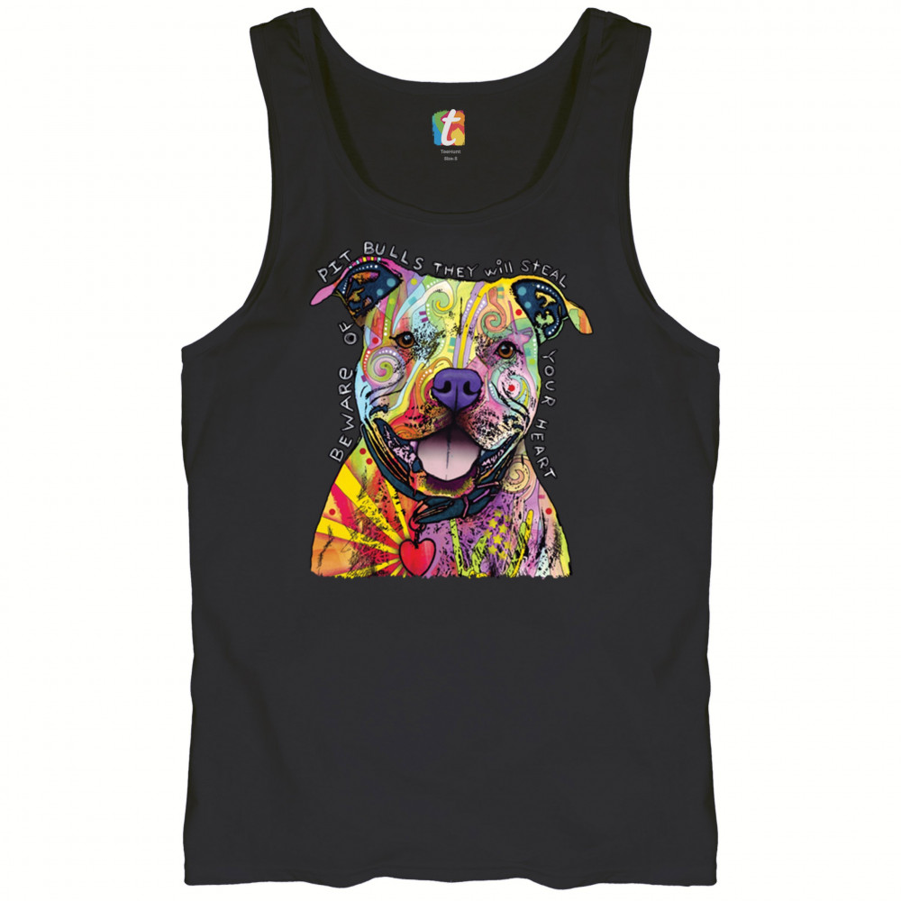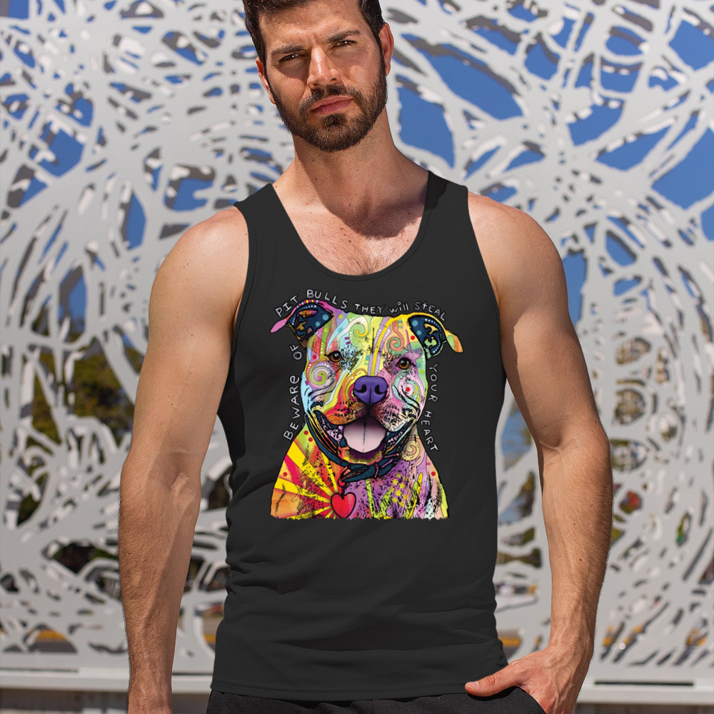 BEWARE OF PIT BULLS tank top dean russo art colorful cute dog men's top black