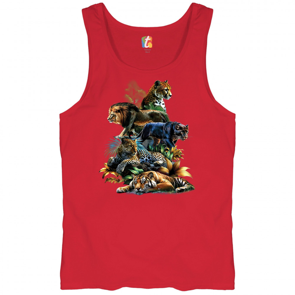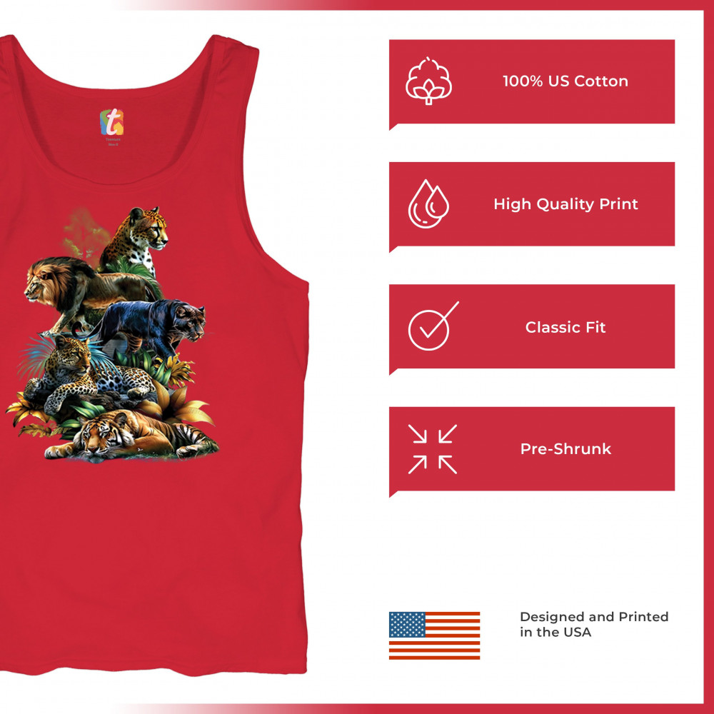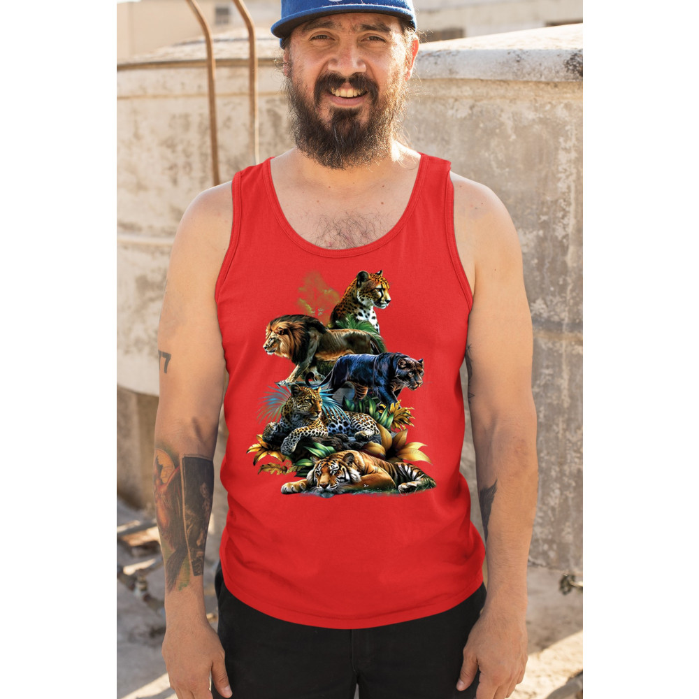 Bold big cat design with lion, tiger, leopard, cheetah, jaguar, and panther. A vivid tribute to wild nature, pride, and animal power.