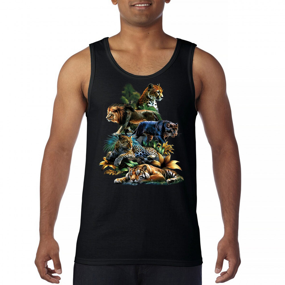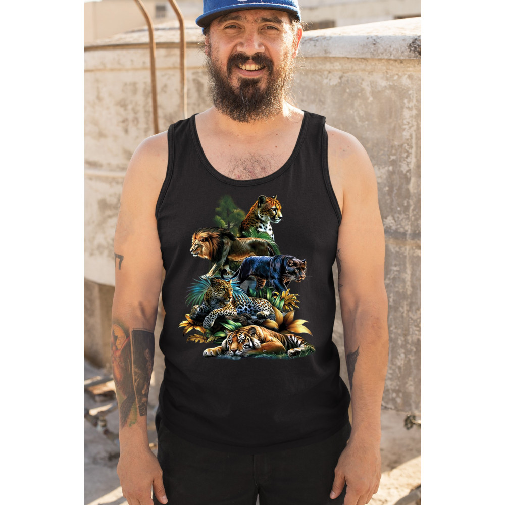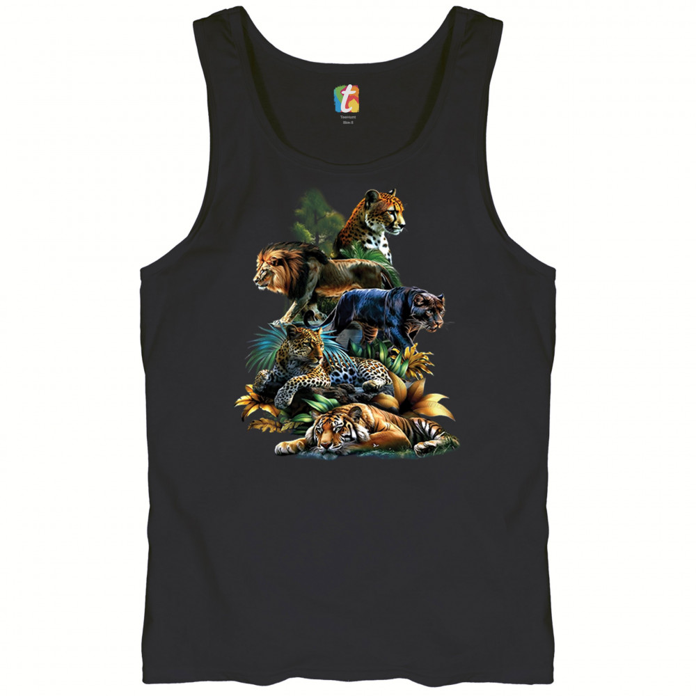 Bold big cat design with lion, tiger, leopard, cheetah, jaguar, and panther. A vivid tribute to wild nature, pride, and animal power.