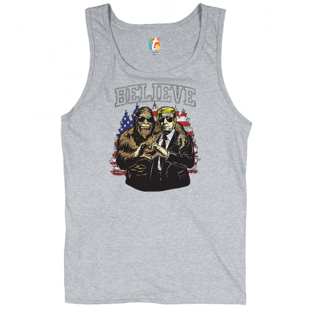 Show your belief with Trump and Bigfoot! Celebrate America First, the Red Wave, and conservative pride with this unique and patriotic design.