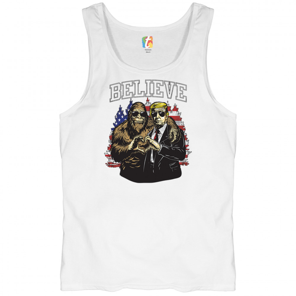Show your belief with Trump and Bigfoot! Celebrate America First, the Red Wave, and conservative pride with this unique and patriotic design.