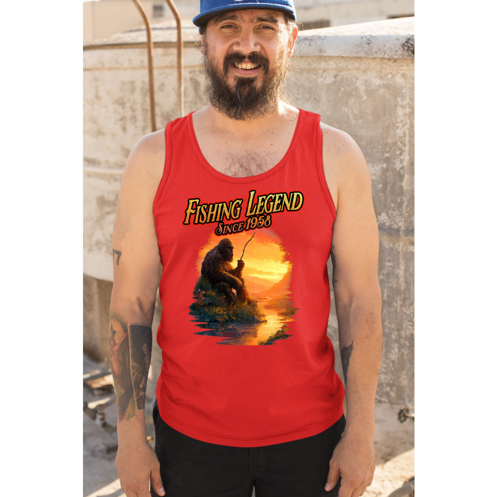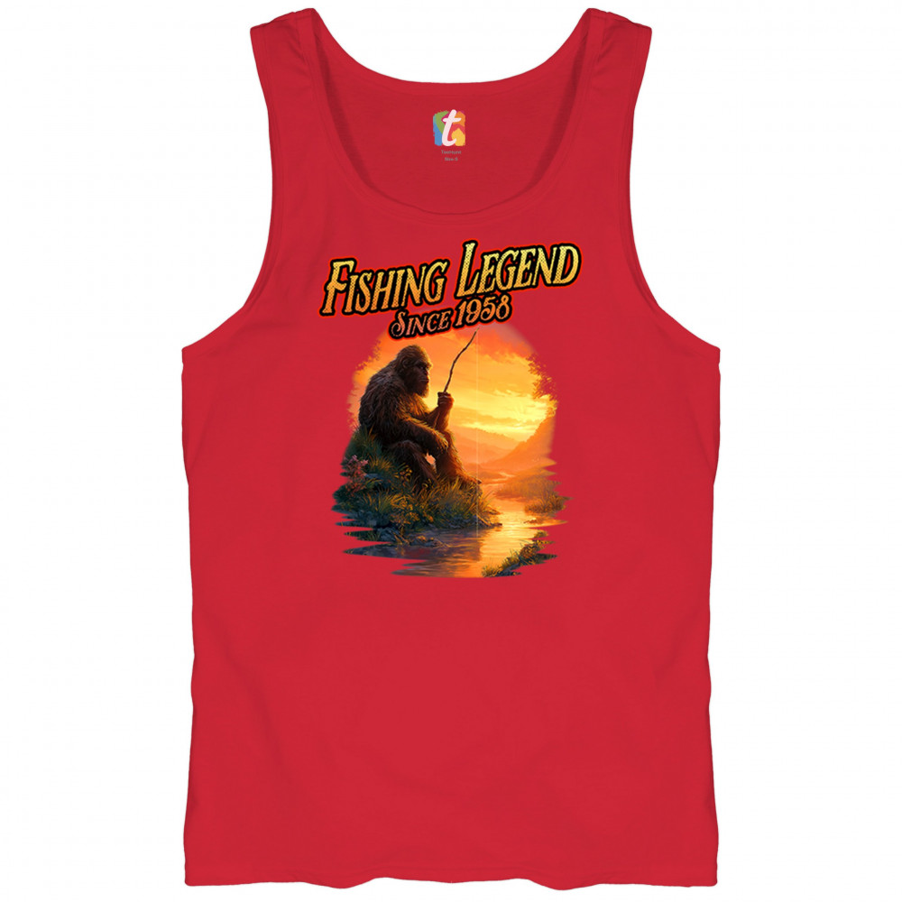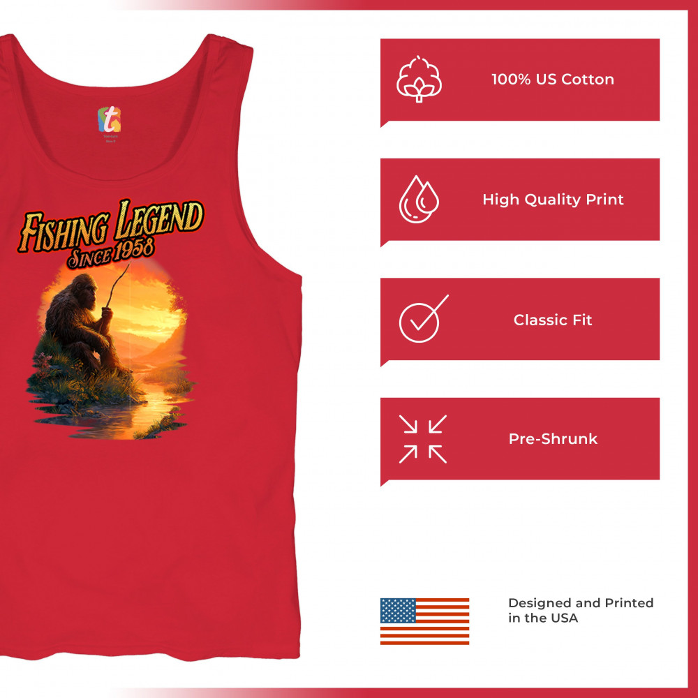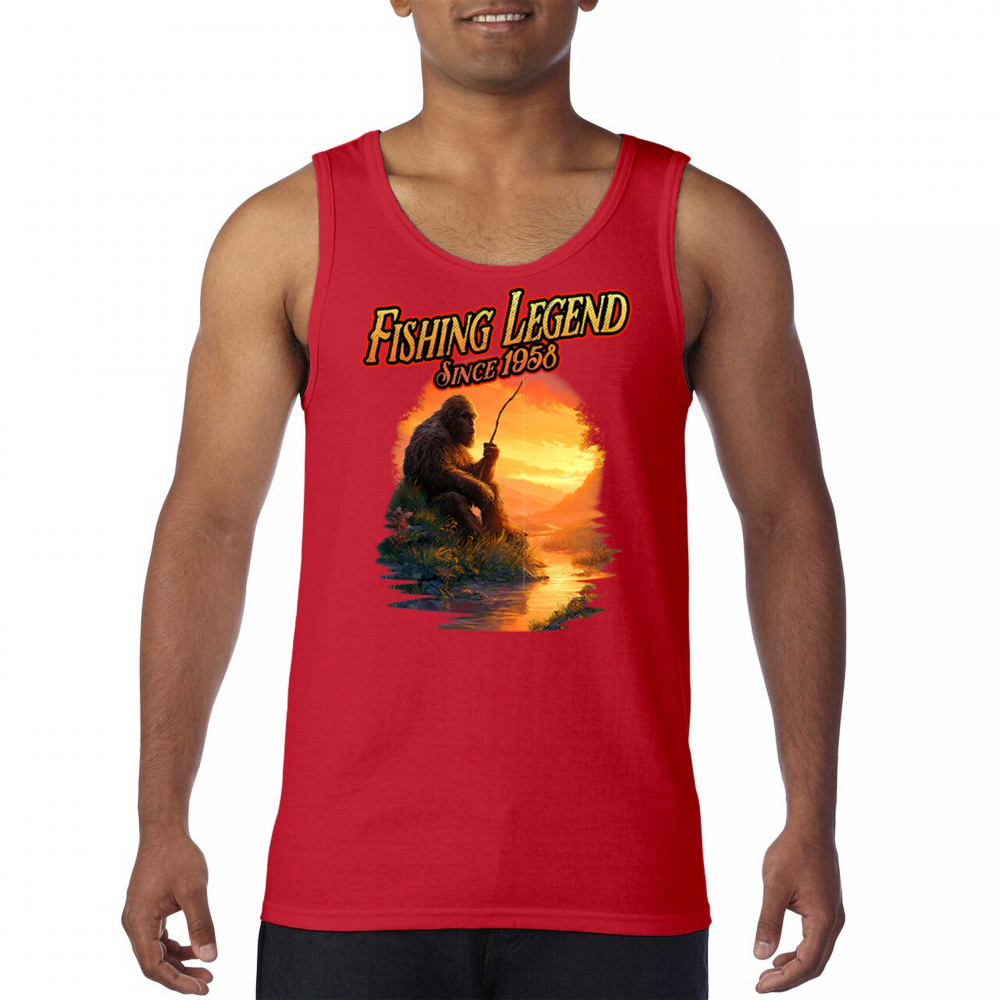 Bigfoot fishing legend design with Sasquatch lifestyle, retro vintage humor, funny wilderness shirt, Father’s Day gift, and campfire style.