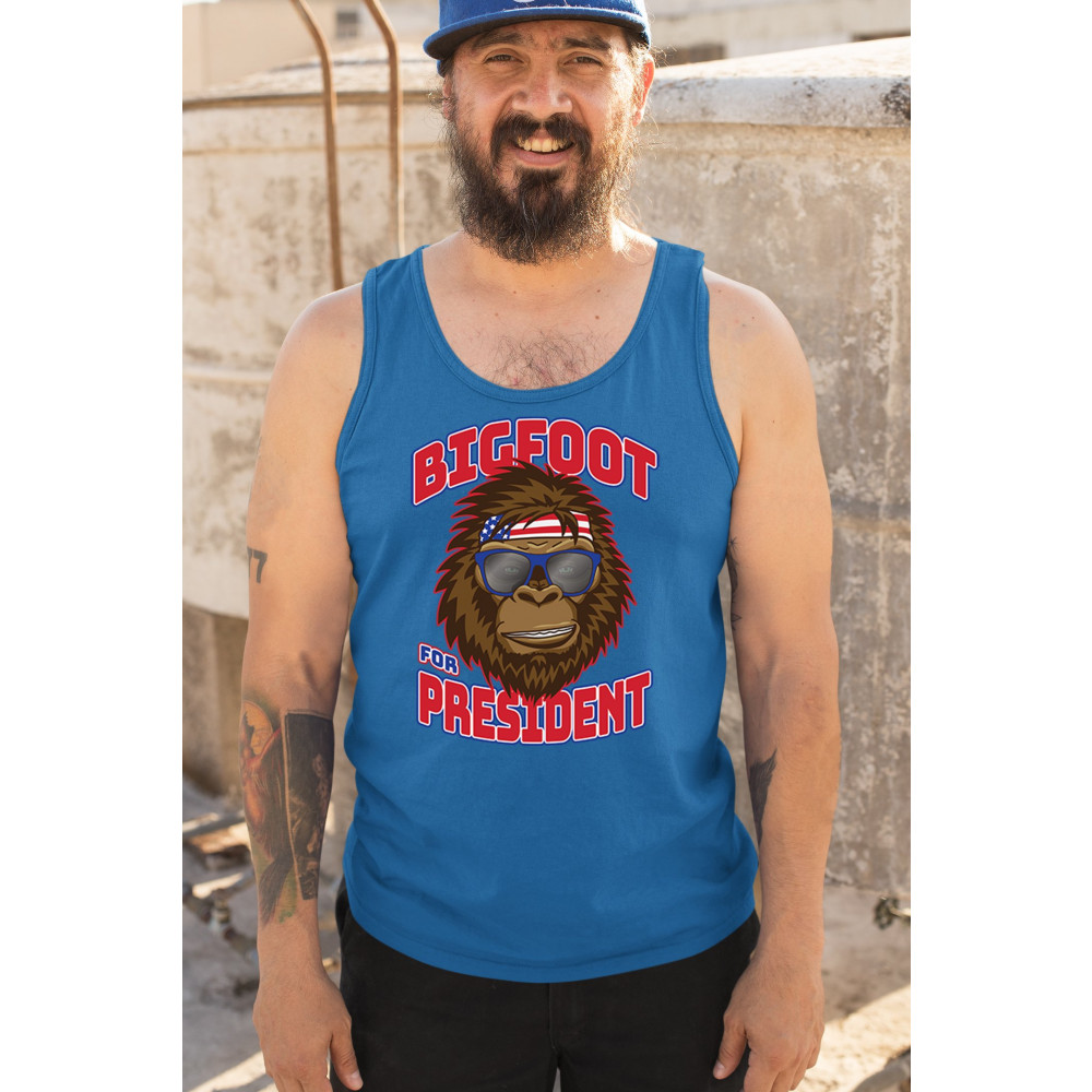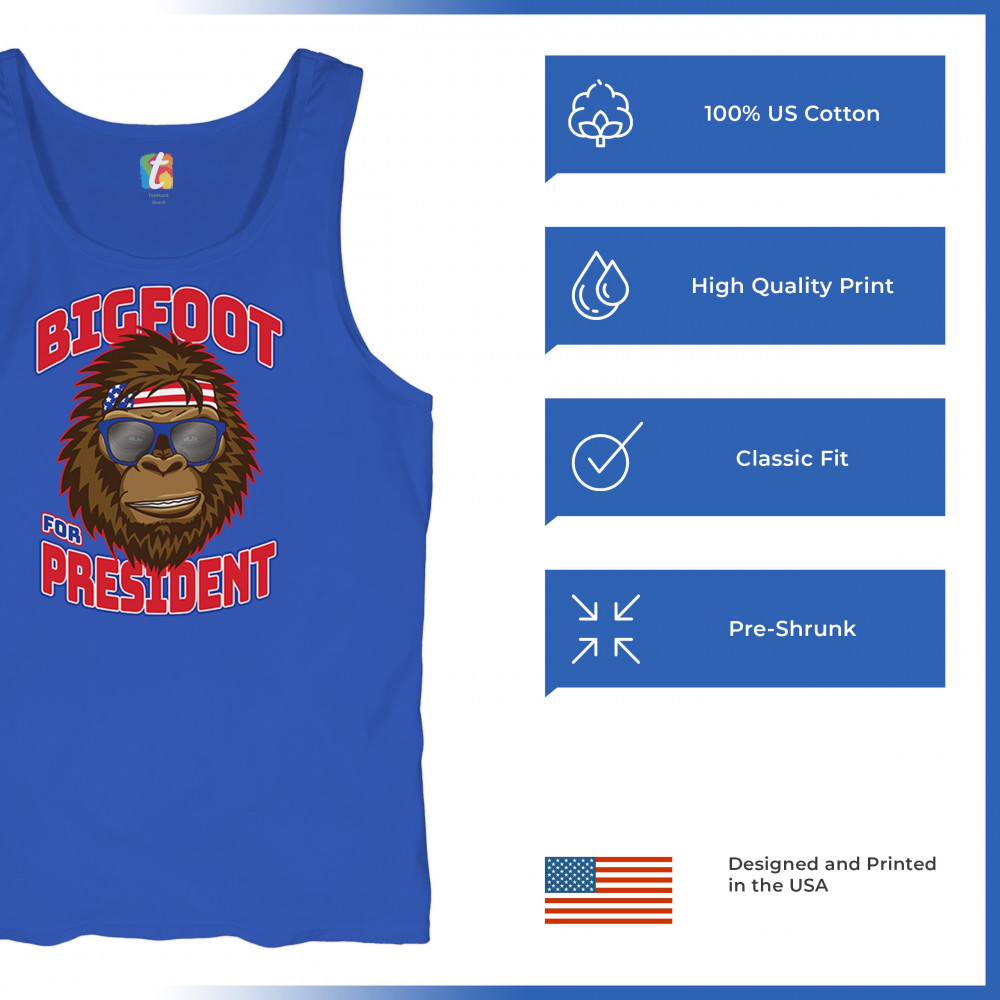 Show off your quirky style with the "Bigfoot for President" design. Perfect for casual wear and parties, featuring Bigfoot in sunglasses and a patriotic bandana.