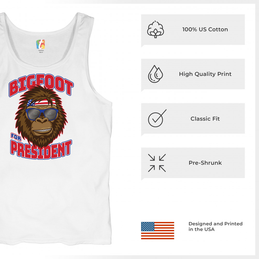Show off your quirky style with the "Bigfoot for President" design. Perfect for casual wear and parties, featuring Bigfoot in sunglasses and a patriotic bandana.