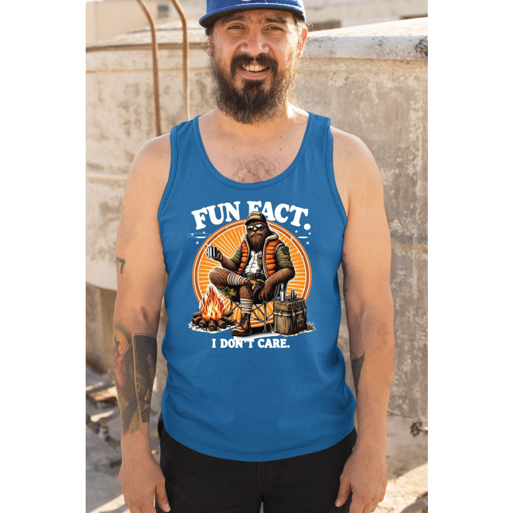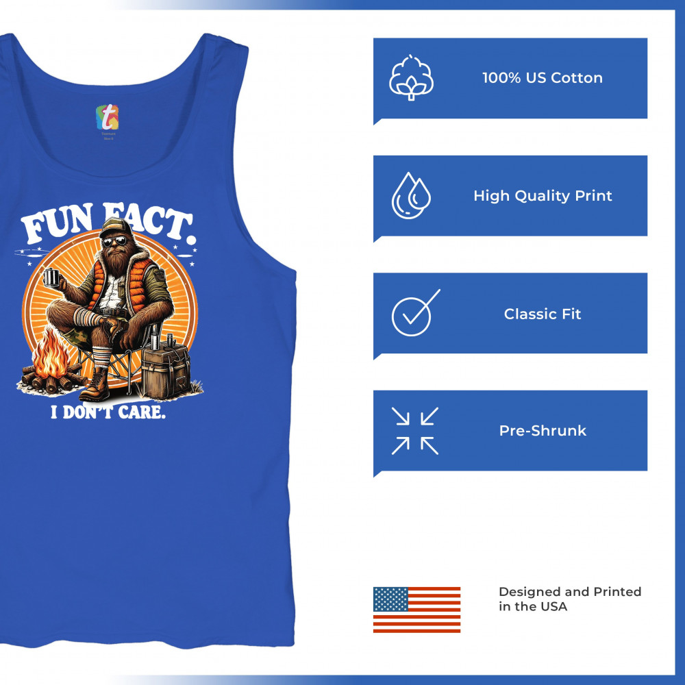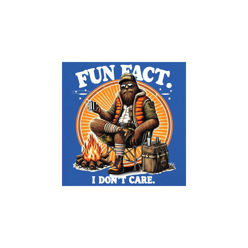 Funny Bigfoot Fun Fact design with cryptid humor, sarcastic outdoors shirt vibe, retro Sasquatch saying, USA pride, and camping adventure style.