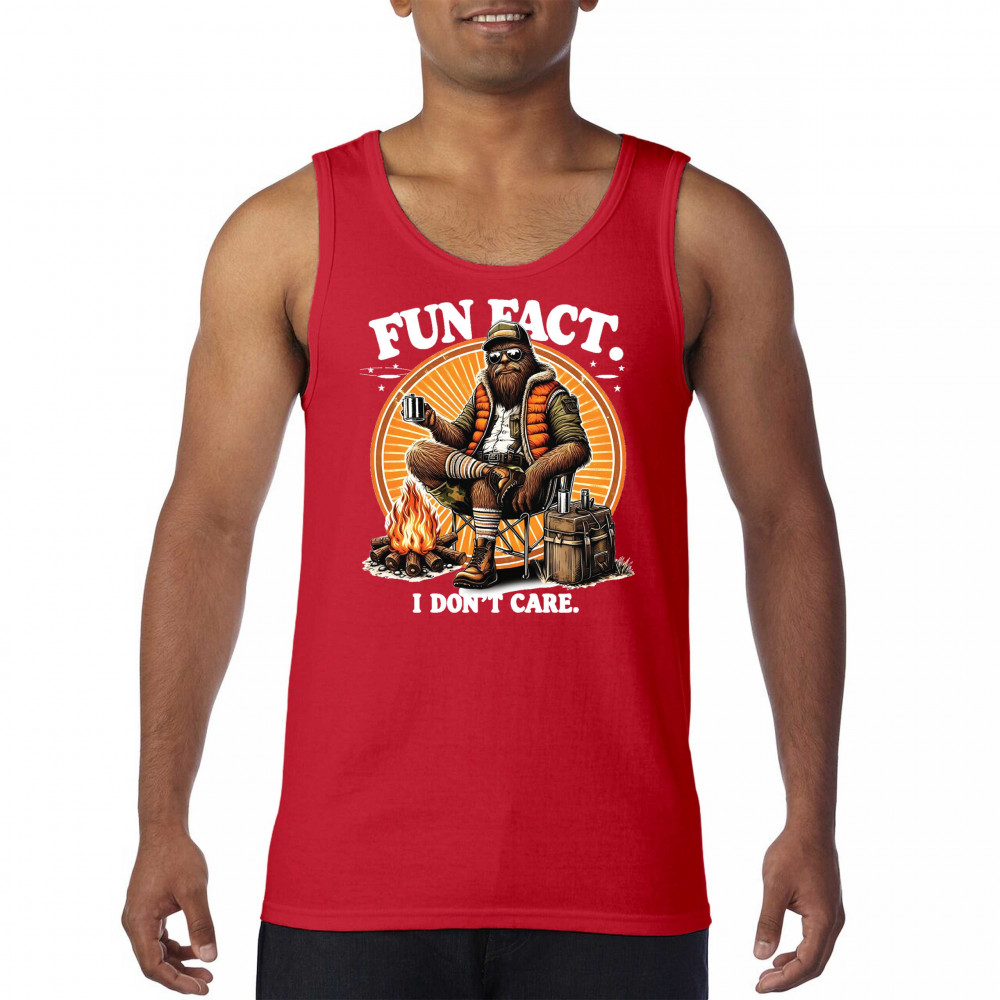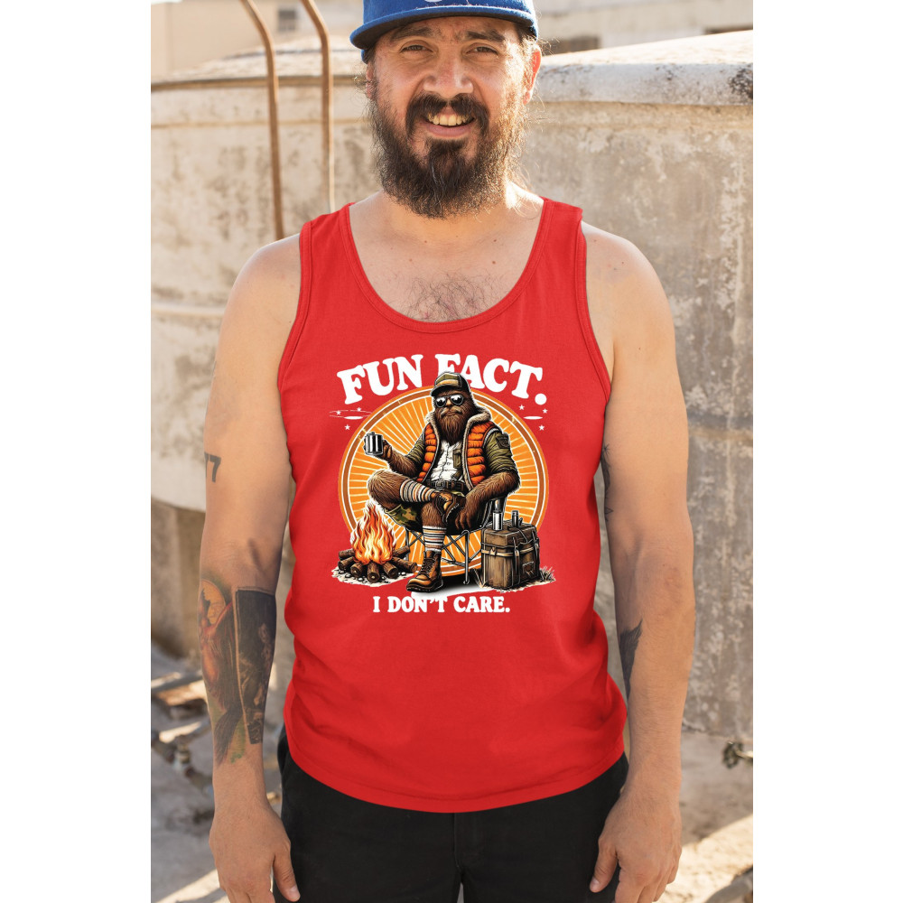 Funny Bigfoot Fun Fact design with cryptid humor, sarcastic outdoors shirt vibe, retro Sasquatch saying, USA pride, and camping adventure style.