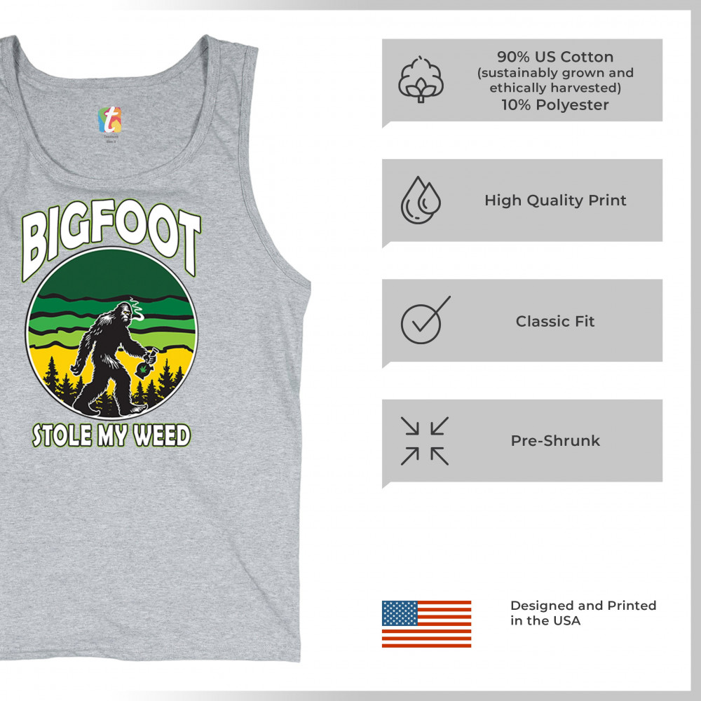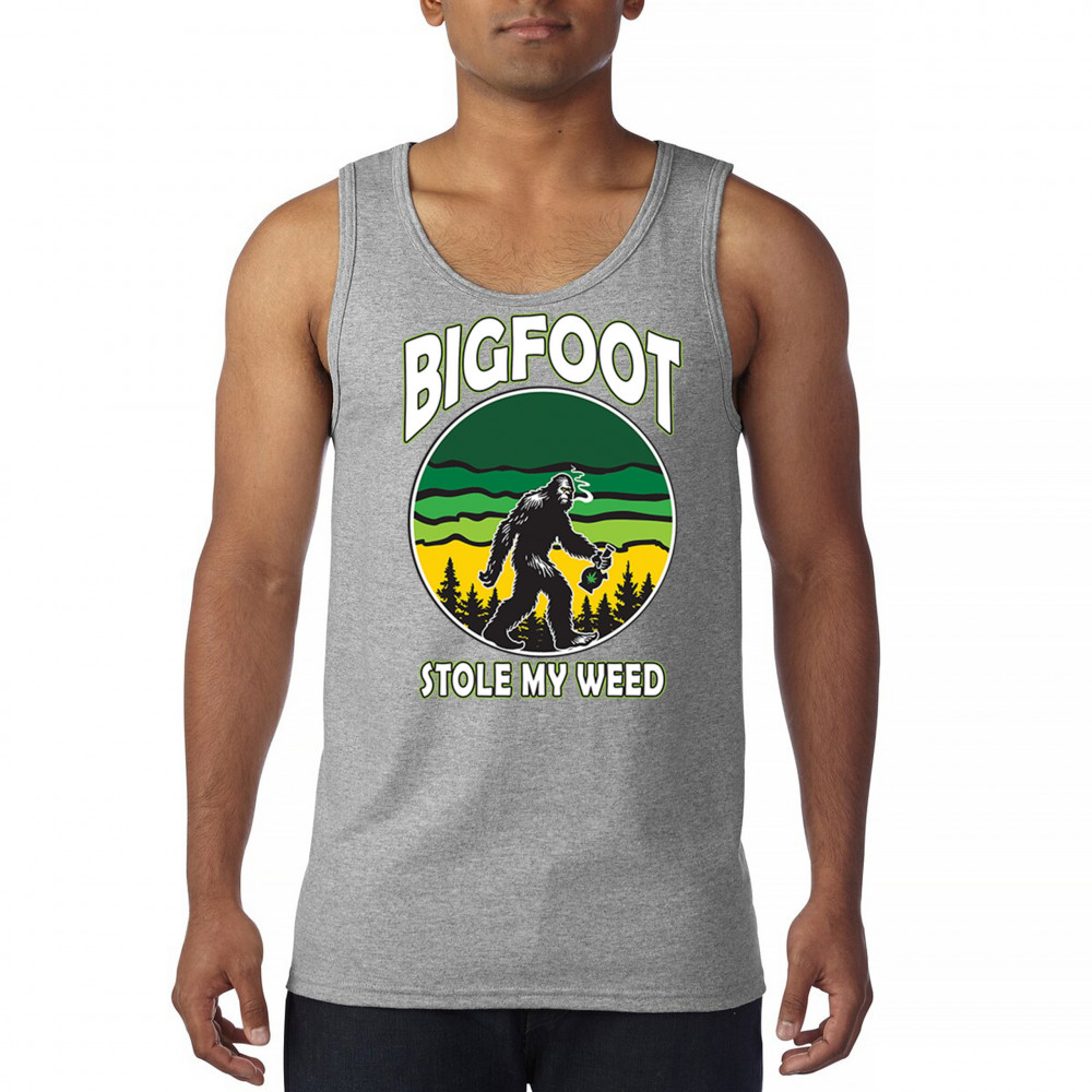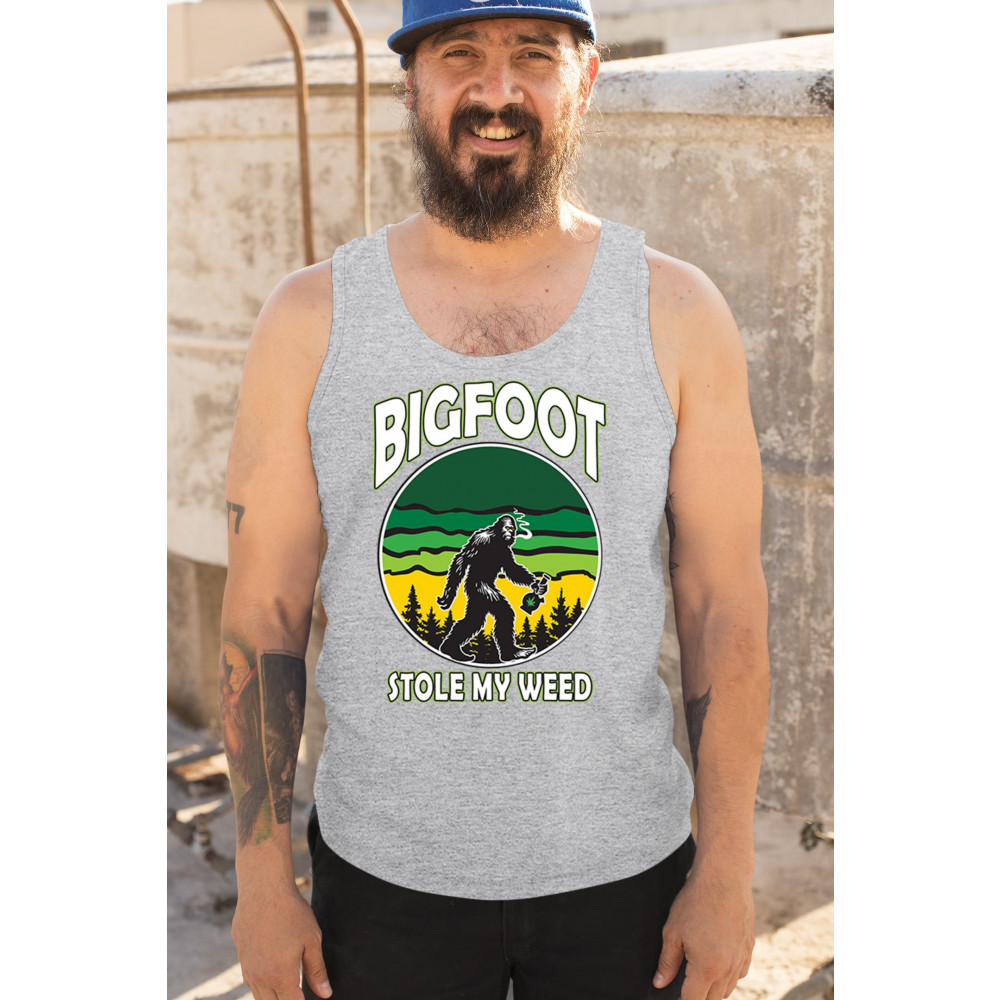 Humorous "Bigfoot Stole My Weed" design featuring Bigfoot and a cannabis leaf. Perfect for fans of Mary Jane, stoned humor, and a chill lifestyle.