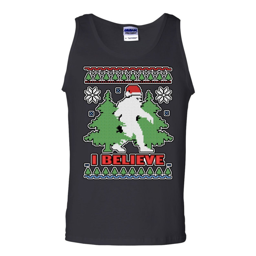 I BELIEVE bigfoot ugly sweatshirt tank top funny christmas yeti sleeveless black