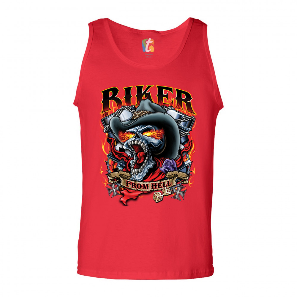 BIKER FROM HELL tank top ride or die skeleton outlaw route 66 men's top red