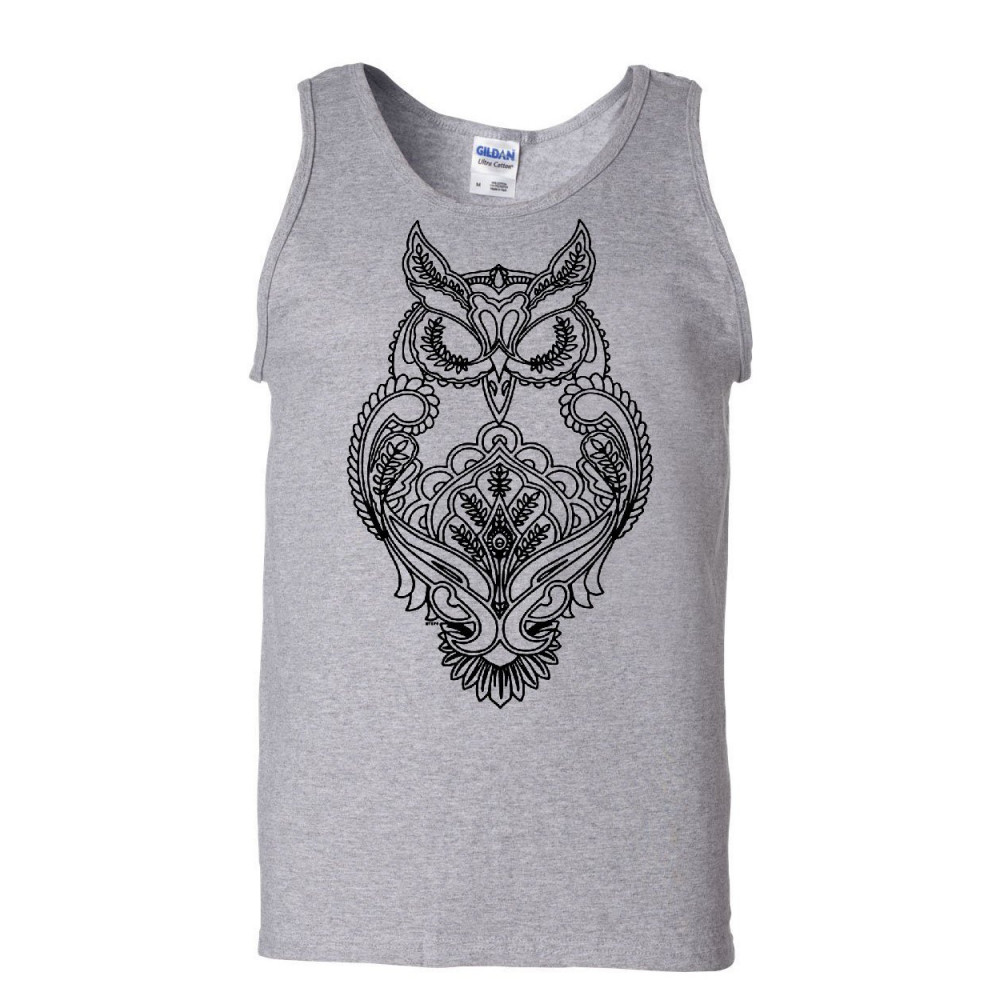 BLACK OWL HENNA STYLE tank top wildlife nature knowledge wisdom sleeveless gray