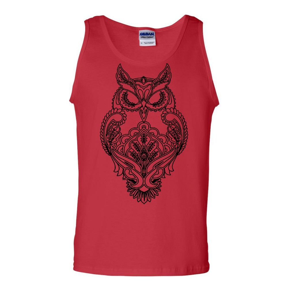 BLACK OWL HENNA STYLE tank top wildlife nature knowledge wisdom sleeveless red