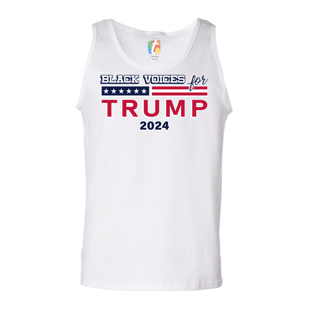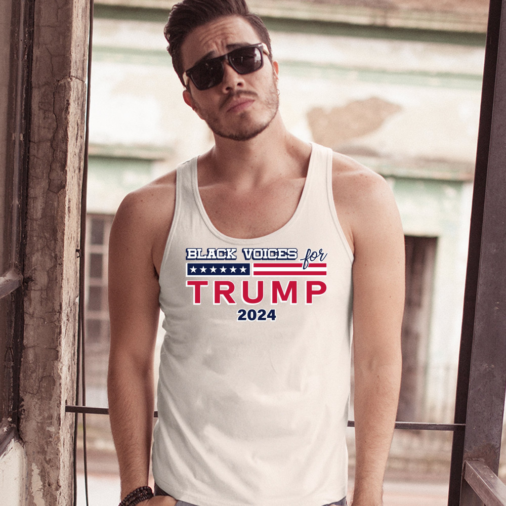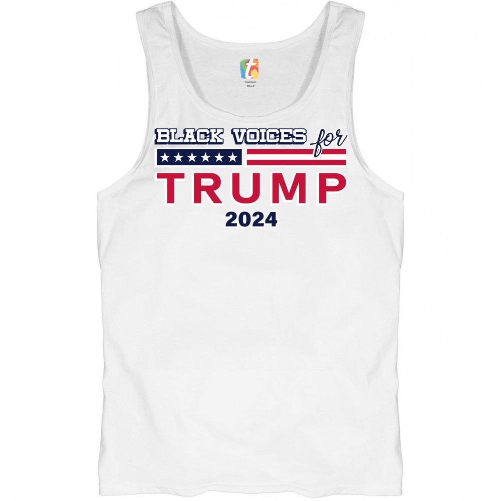 BLACK VOICES FOR TRUMP tank top donald trump 2024 stars and stripes men's top white