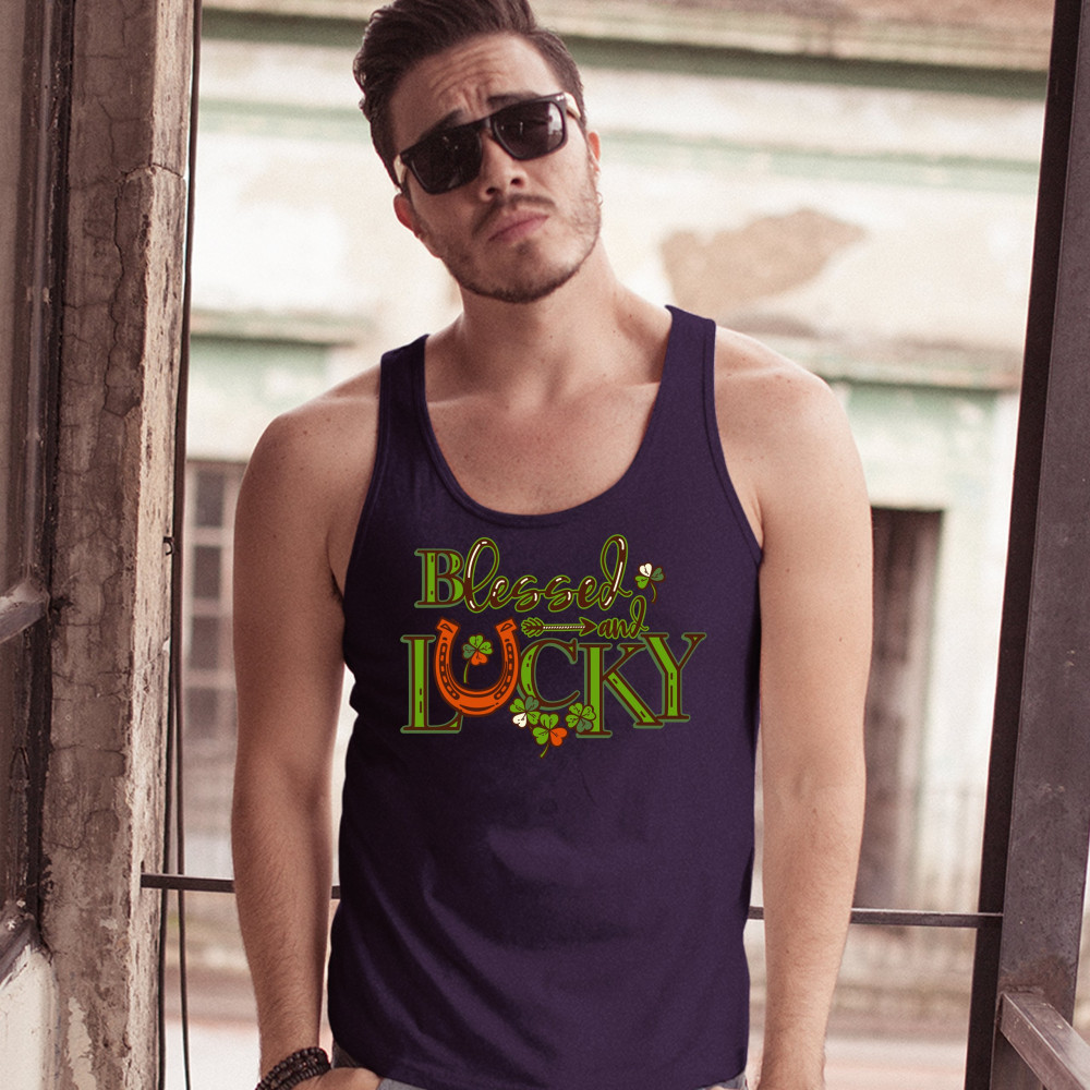 BLESSED AND LUCKY tank top st. patrick's day clover irish malarkey men's top navy blue