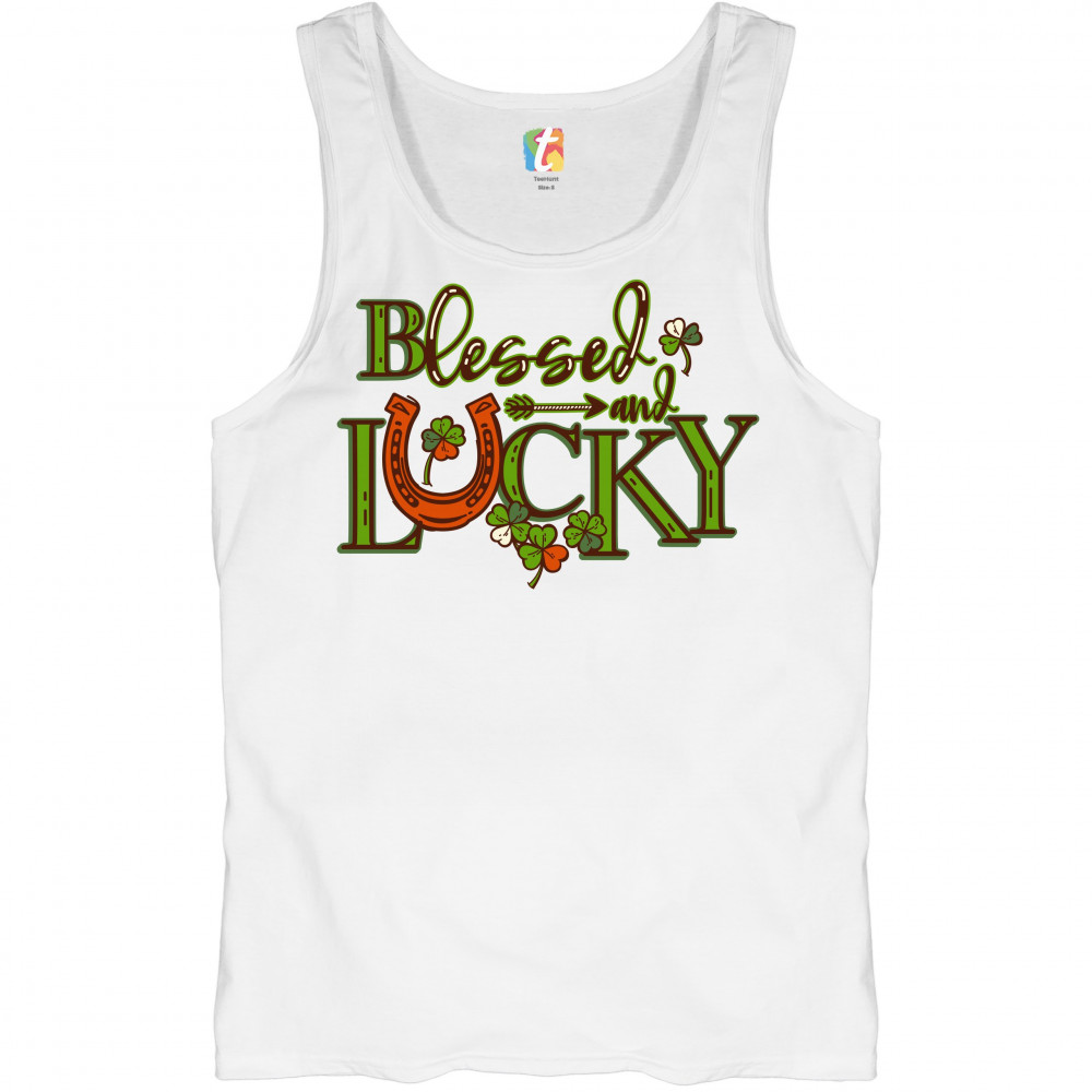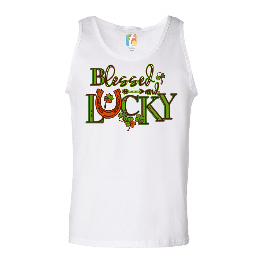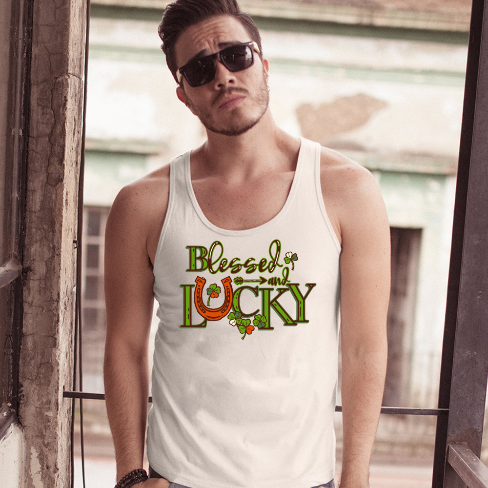 BLESSED AND LUCKY tank top st. patrick's day clover irish malarkey men's top white