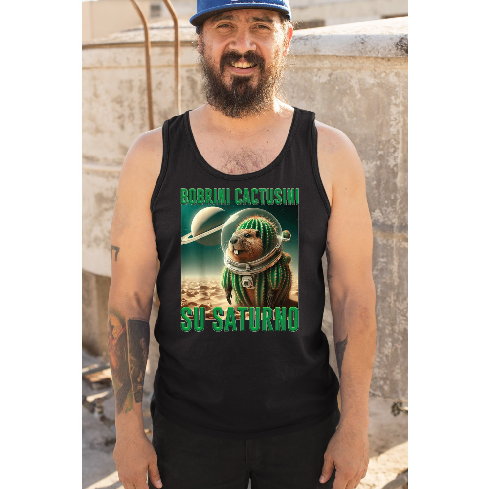 BOBRINI CACTUSINI SU SATURNO men's tank top italian brainrot gen z meme black