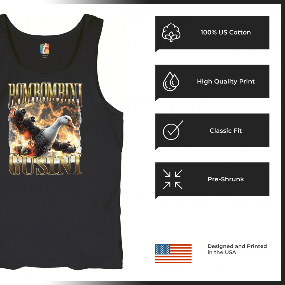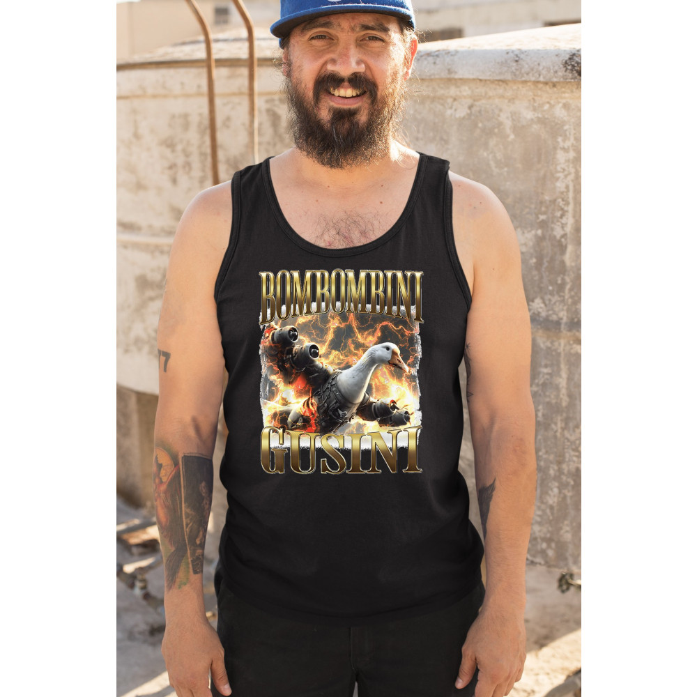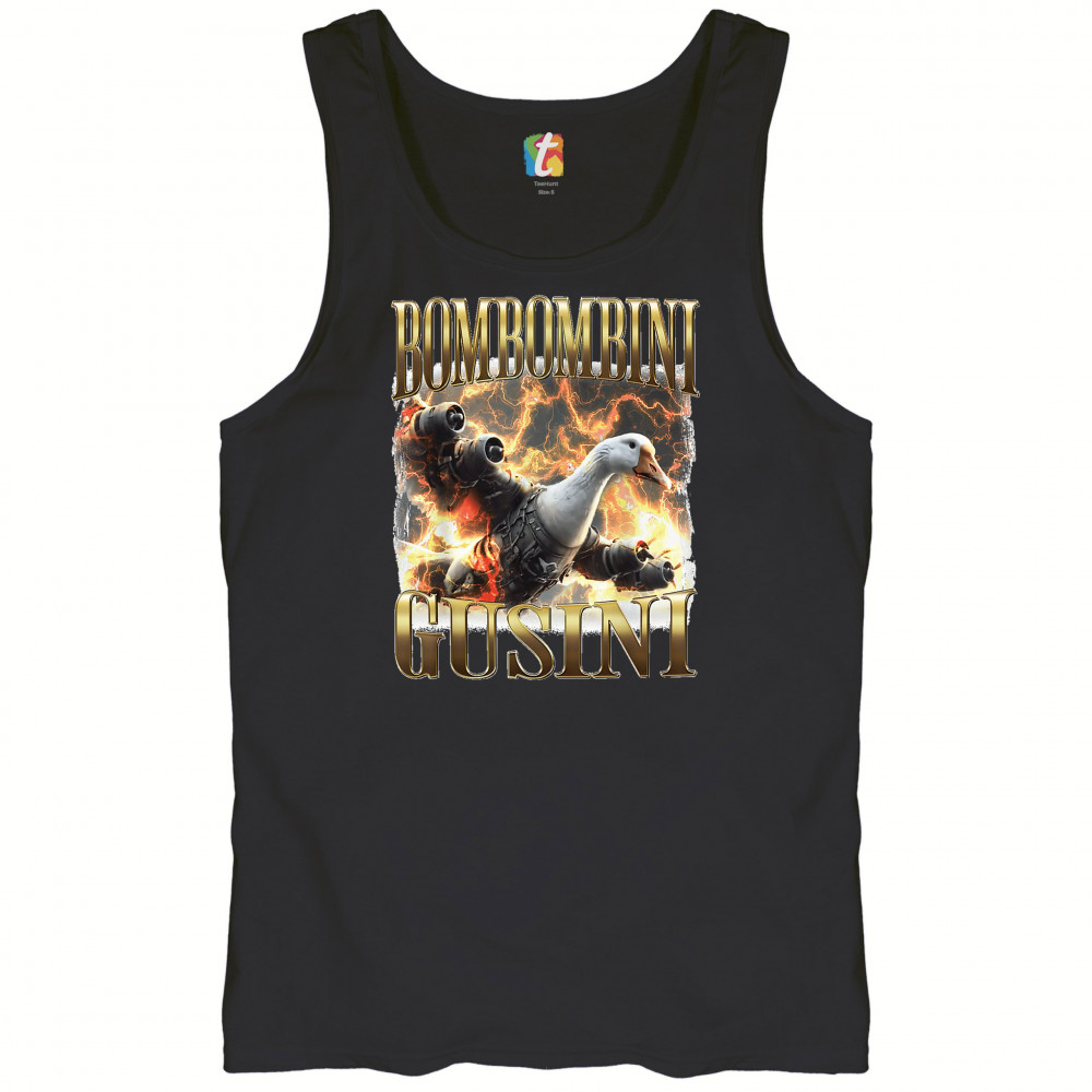 Bombombini Gusini is meme chaos at Mach speed. Featuring a mechanized goose powered by pure Italian Brainrot energy, this design blends cursed-core humor, Gen Z absurdity, ironic fashion, and weirdcore visuals. Perfect for animal meme fans, TikTok-core addicts, and anyone whose humor is completely unhinged.