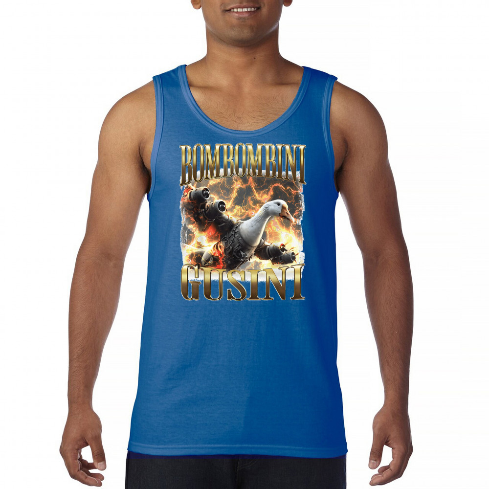 Bombombini Gusini is meme chaos at Mach speed. Featuring a mechanized goose powered by pure Italian Brainrot energy, this design blends cursed-core humor, Gen Z absurdity, ironic fashion, and weirdcore visuals. Perfect for animal meme fans, TikTok-core addicts, and anyone whose humor is completely unhinged.