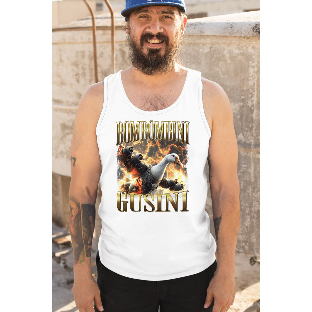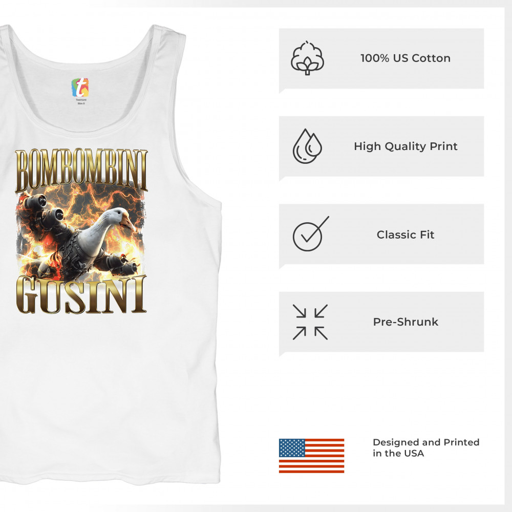 Bombombini Gusini is meme chaos at Mach speed. Featuring a mechanized goose powered by pure Italian Brainrot energy, this design blends cursed-core humor, Gen Z absurdity, ironic fashion, and weirdcore visuals. Perfect for animal meme fans, TikTok-core addicts, and anyone whose humor is completely unhinged.