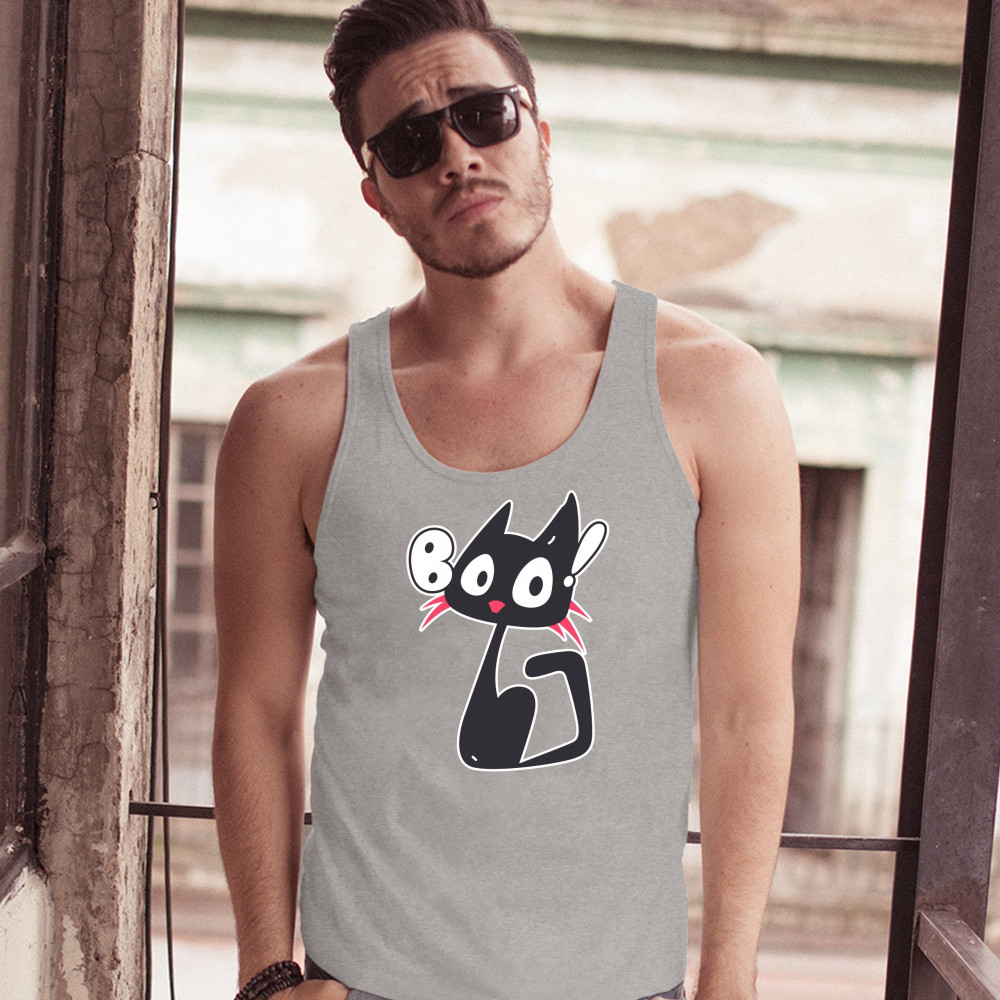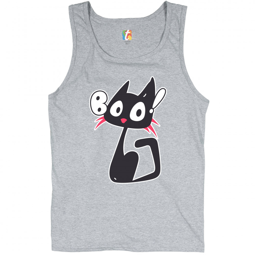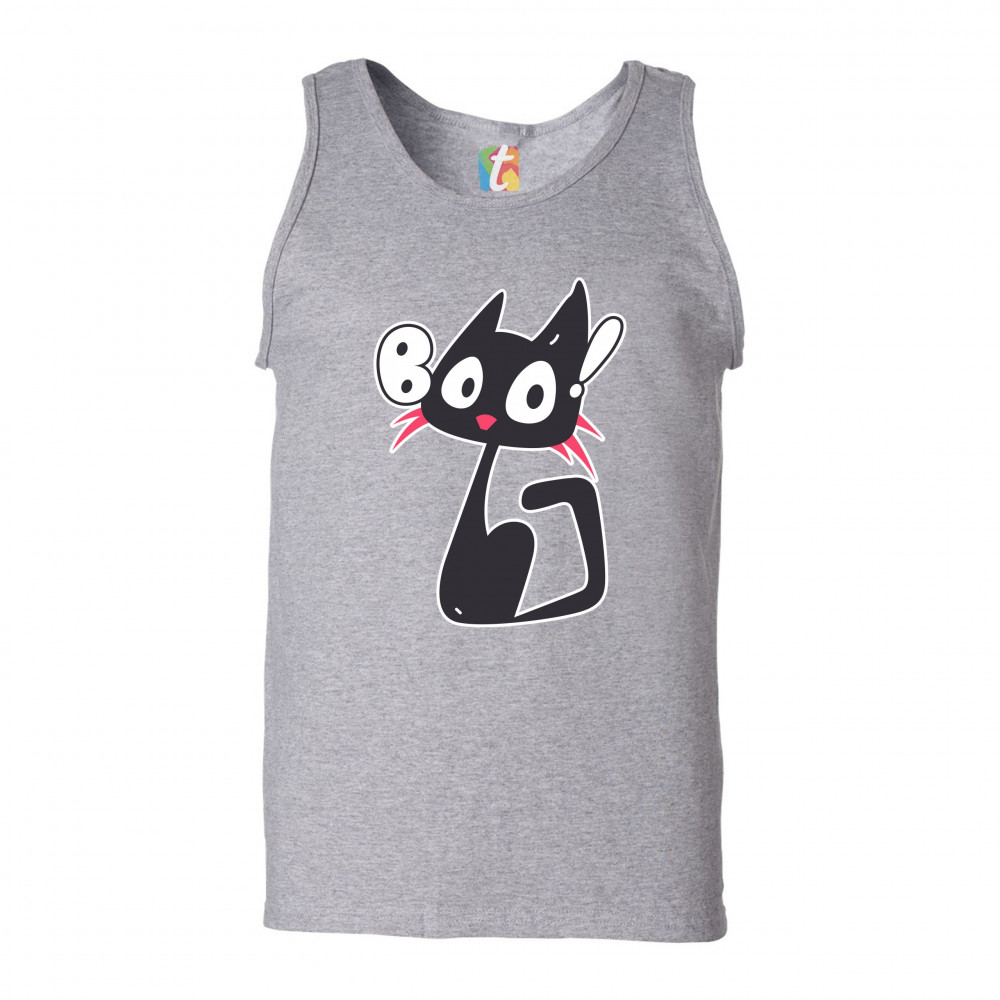 BOO KITTEN tank top happy halloween trick-or-treating funny cat men's top gray