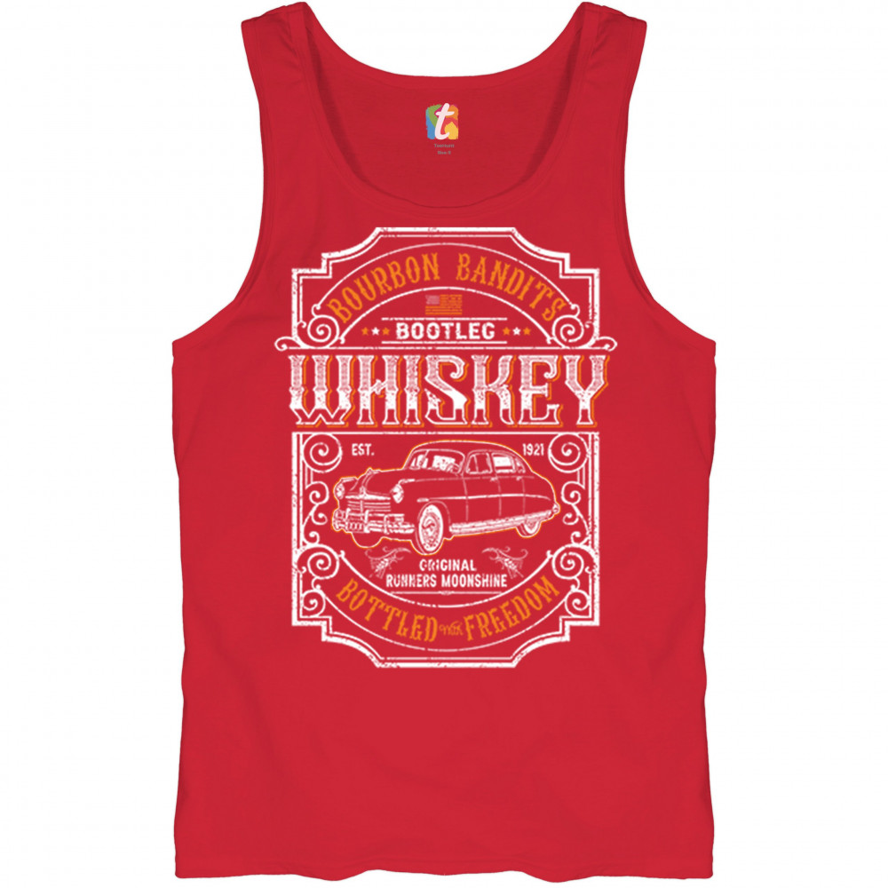 BOURBON BANDIT'S BOOTLEG WHISKEY tank top original runners moonshine men's top red