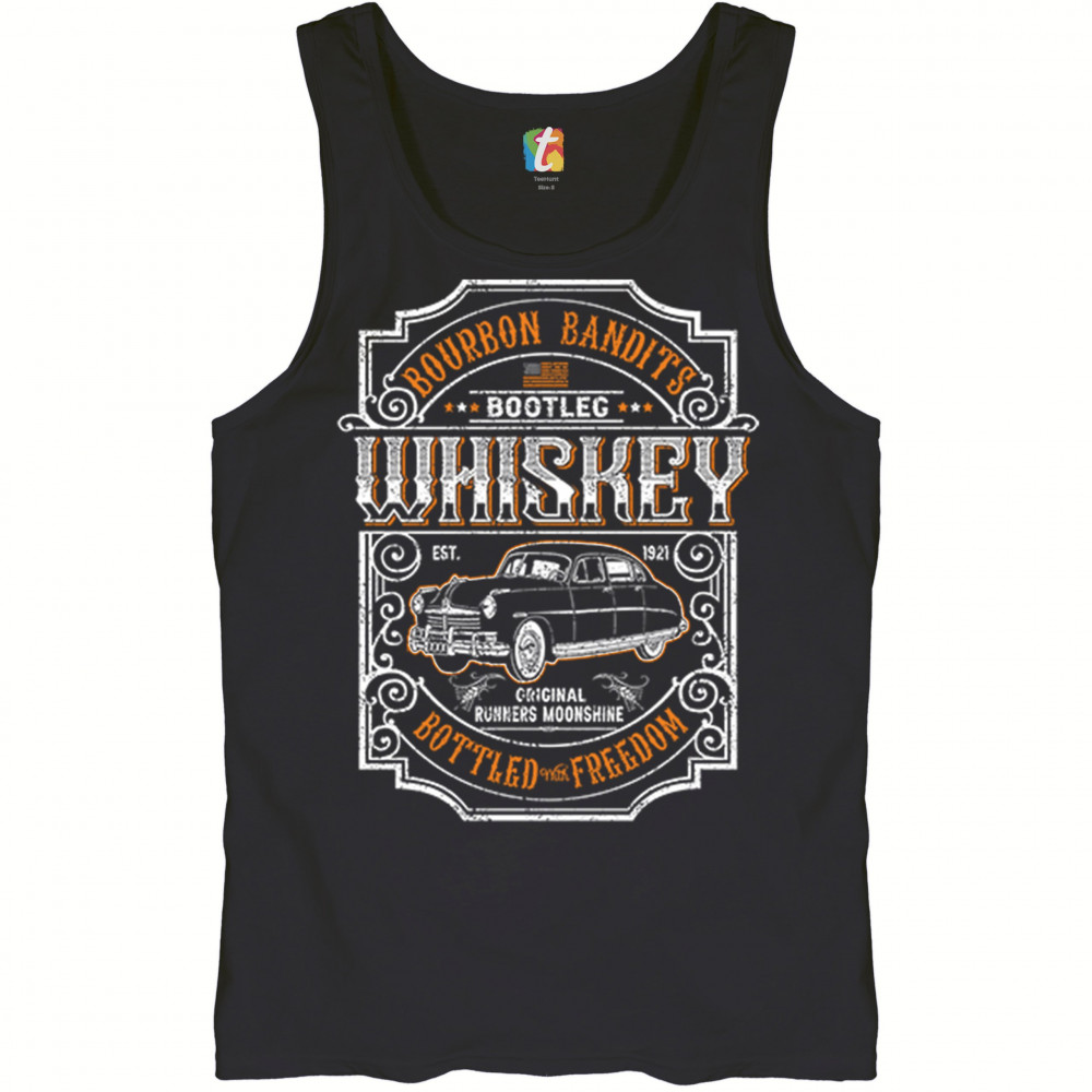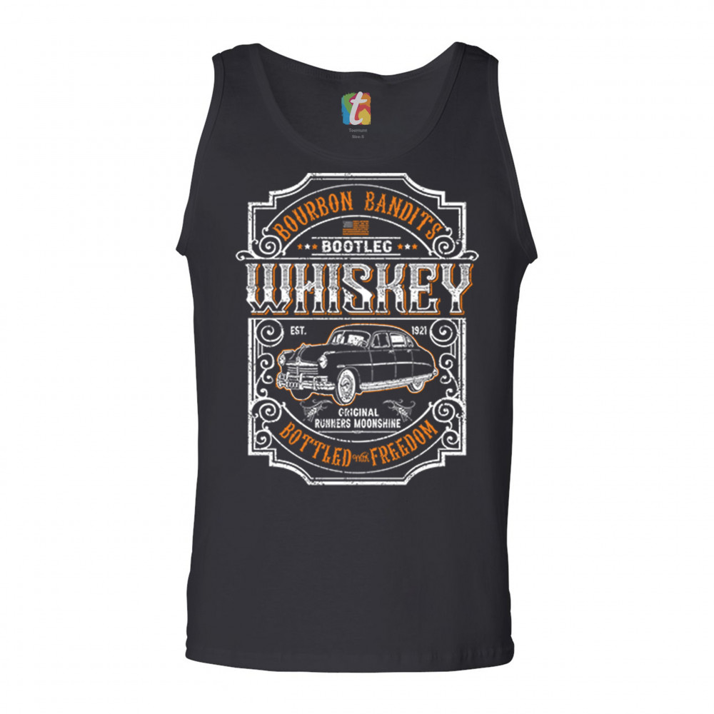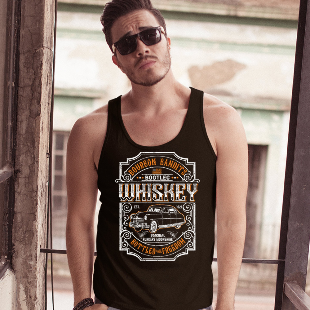 BOURBON BANDIT'S BOOTLEG WHISKEY tank top original runners moonshine men's top black