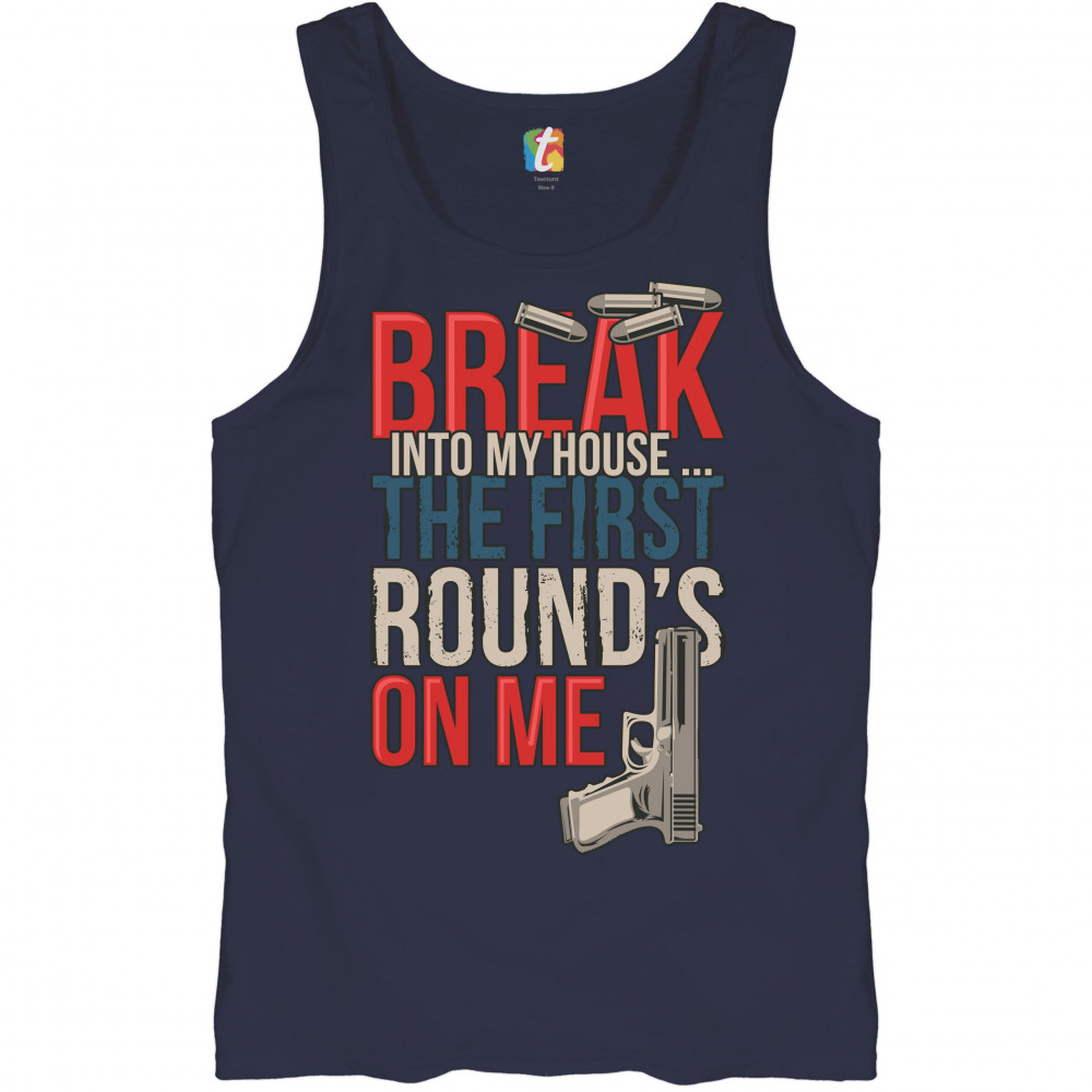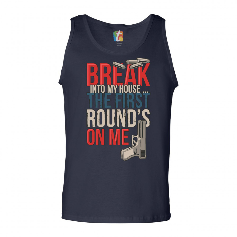 BREAK INTO MY HOUSE.. THE FIRST ROUND'S ON ME tank top 2nd amendment men's top navy blue