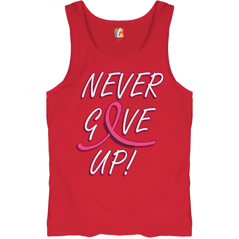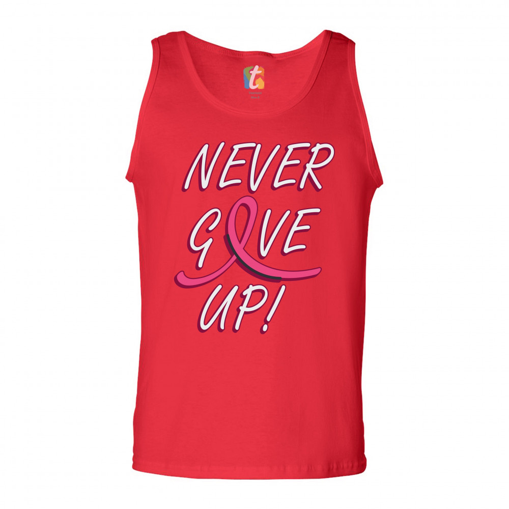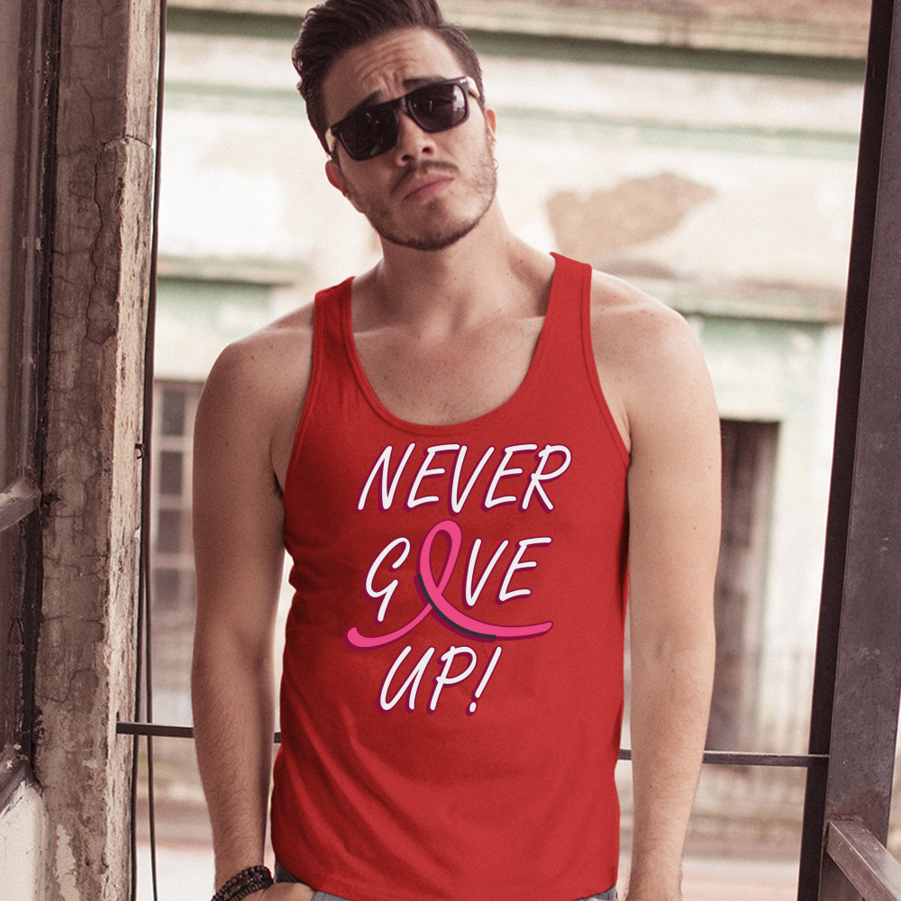 BREAST CANCER AWARENESS NEVER GIVE UP tank top pink ribbon men's top red