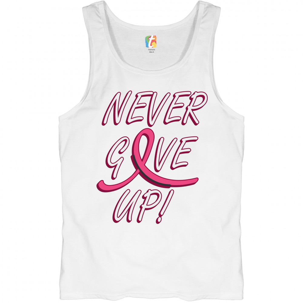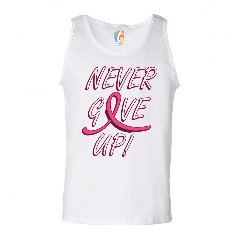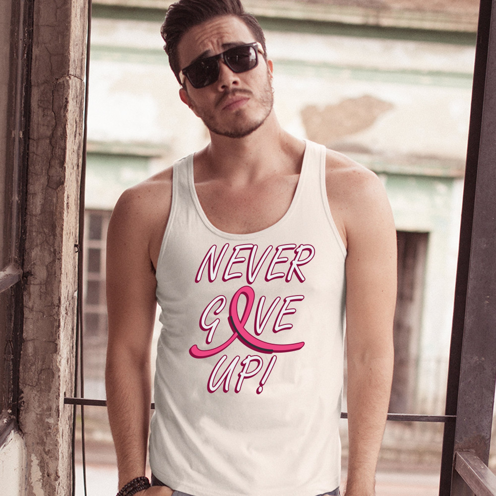BREAST CANCER AWARENESS NEVER GIVE UP tank top pink ribbon men's top white