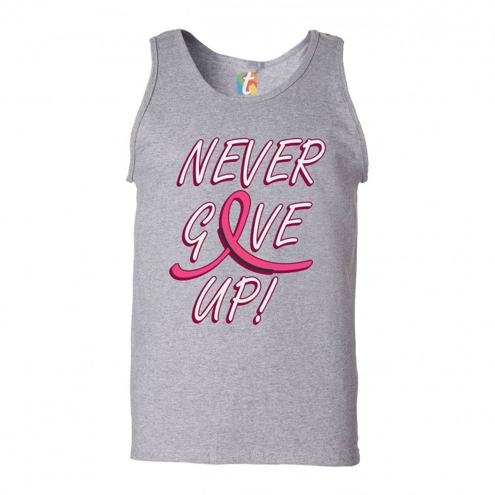 BREAST CANCER AWARENESS NEVER GIVE UP tank top pink ribbon men's top gray