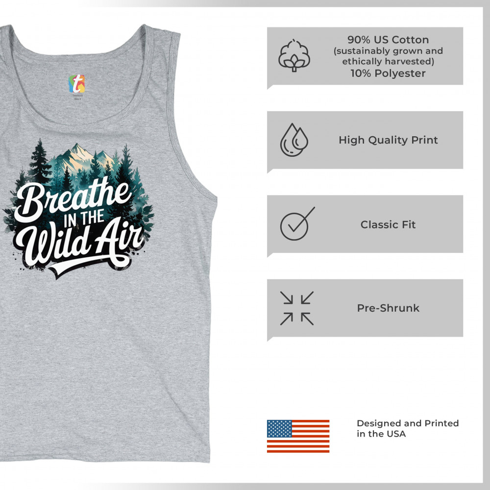 Breathe in the Wild Air brings nature to your wardrobe. Whether you're a forest lover, trail enthusiast, or weekend hiker, this design embraces adventure, wilderness vibes, and peaceful campfire moments. Ideal for outdoorsmen, off-grid travelers, and national park explorers seeking freedom in the trees.