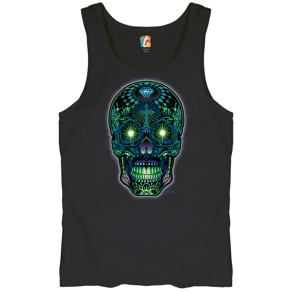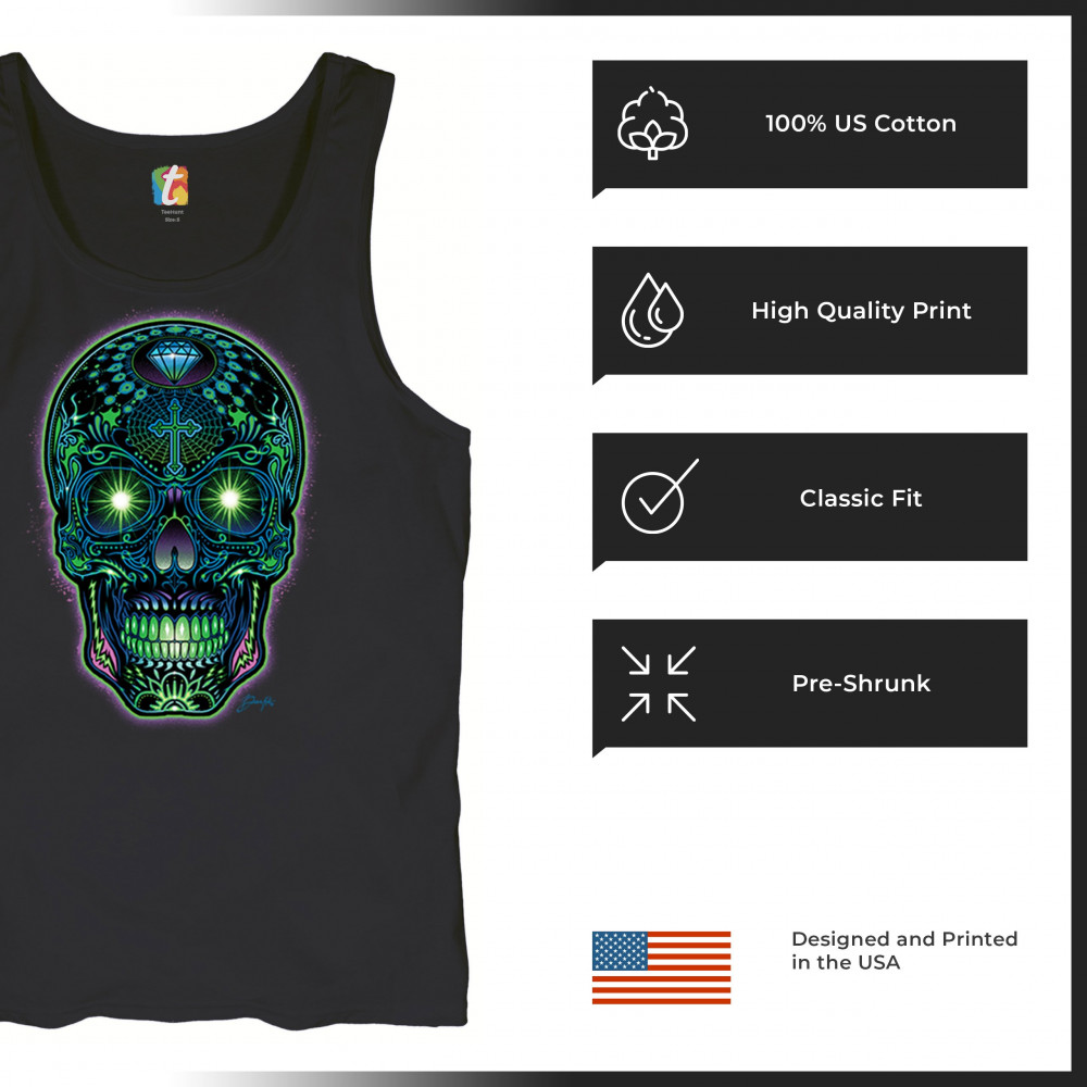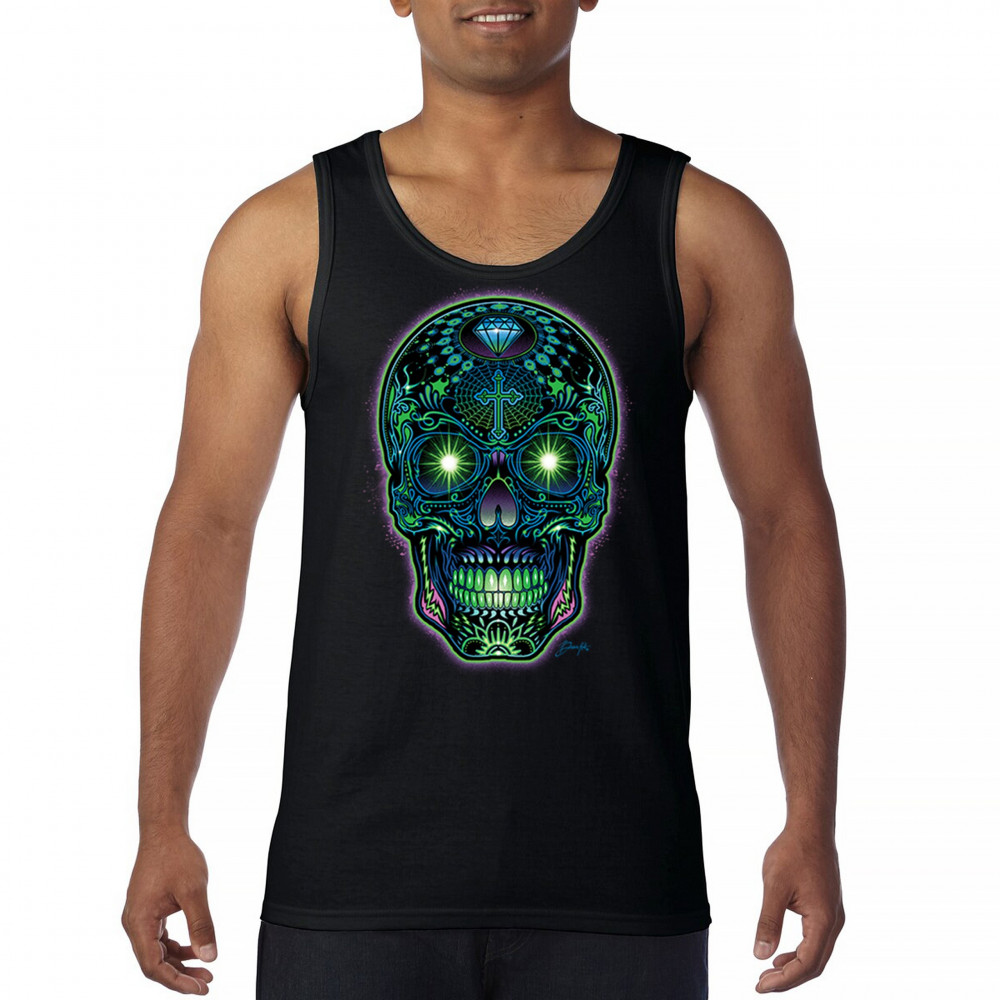 BRIGHT SUGAR SKULL tank top dia de los muertos neon day of the dead men's top black