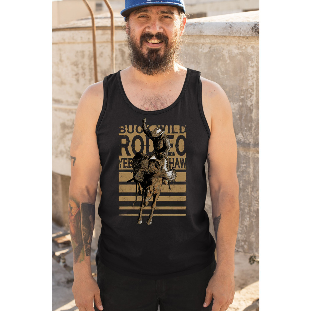 Rodeo bronc rider design with cowboy grit. Western graphic for fans of ranch life, bucking broncos, and rodeo events.
