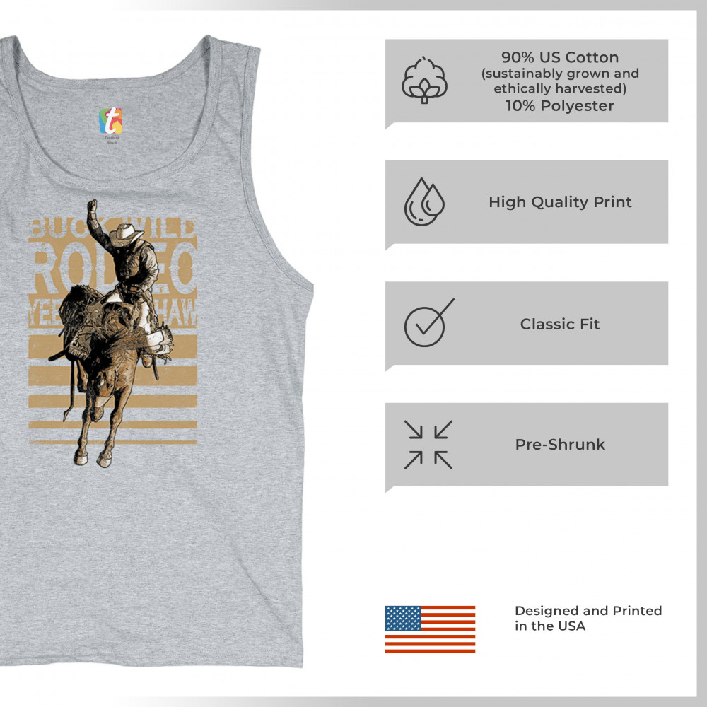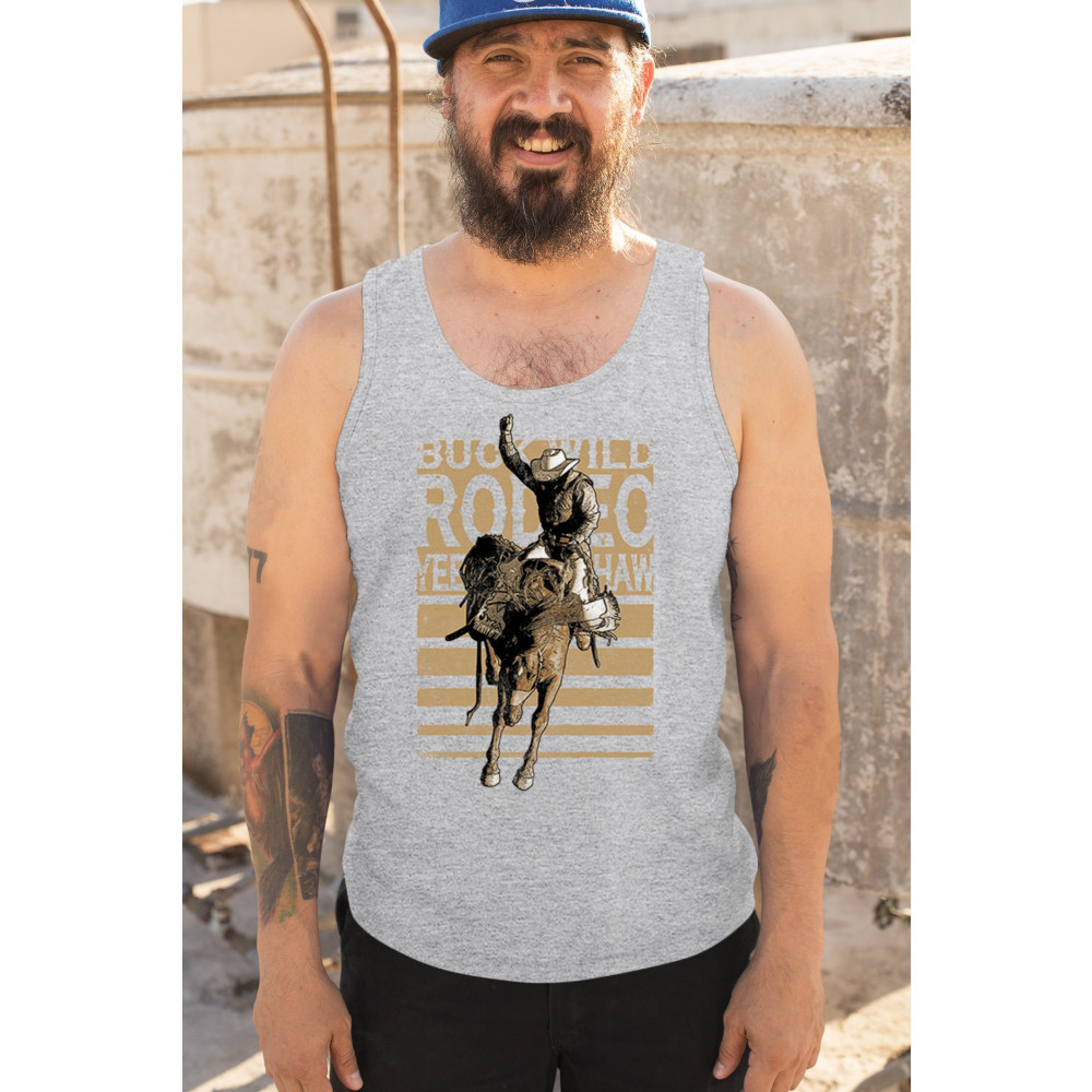 Rodeo bronc rider design with cowboy grit. Western graphic for fans of ranch life, bucking broncos, and rodeo events.
