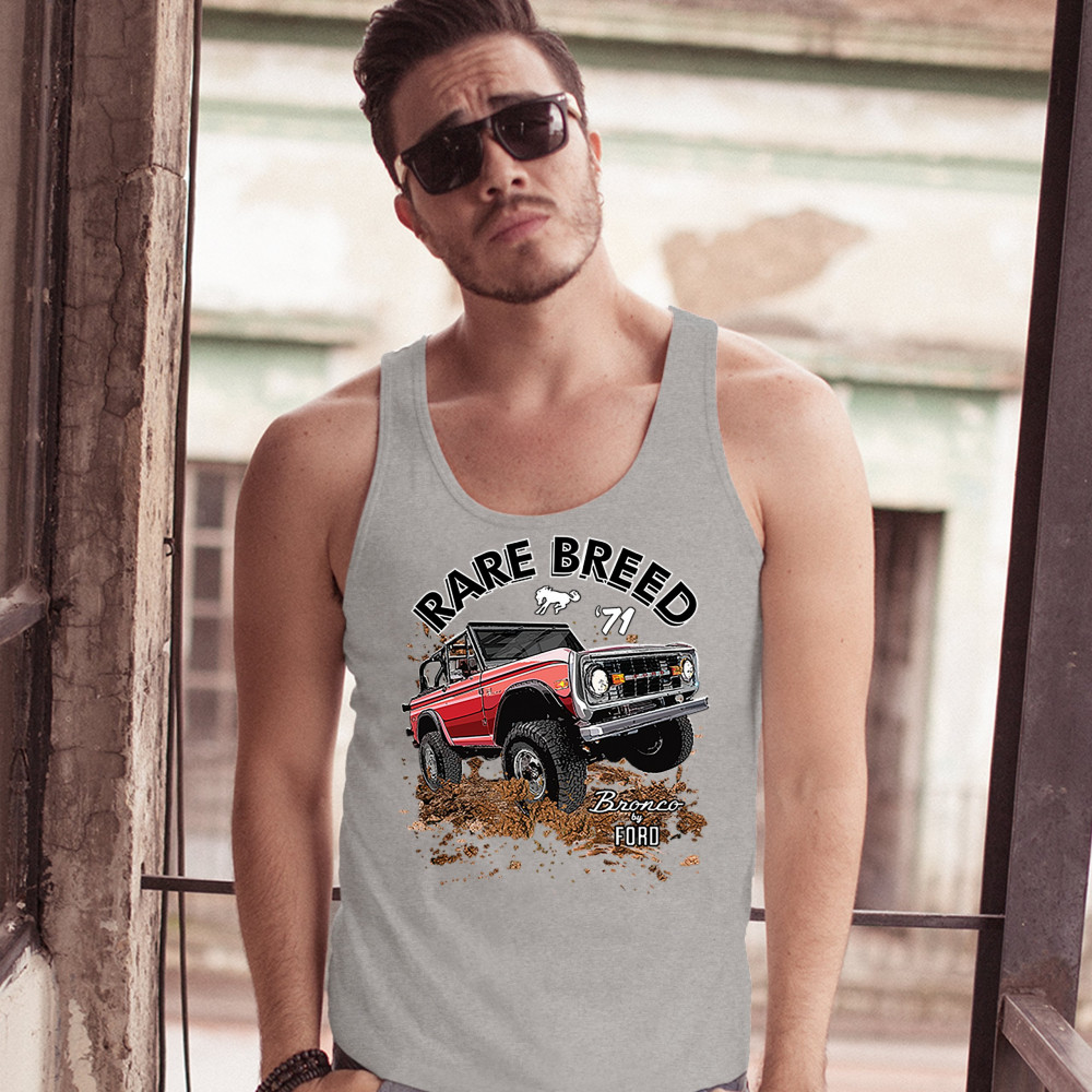 BRONCO BY FORD tank top rare breed '71 offroad ford truck licensed men's top gray