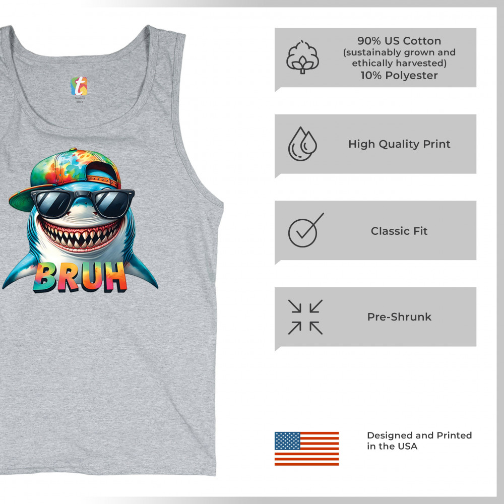 Bruh Shark meme shirt with Gen Z humor, cartoon shark design, summer beach vibes, Sigma Aura, and Italian Brainrot internet humor.