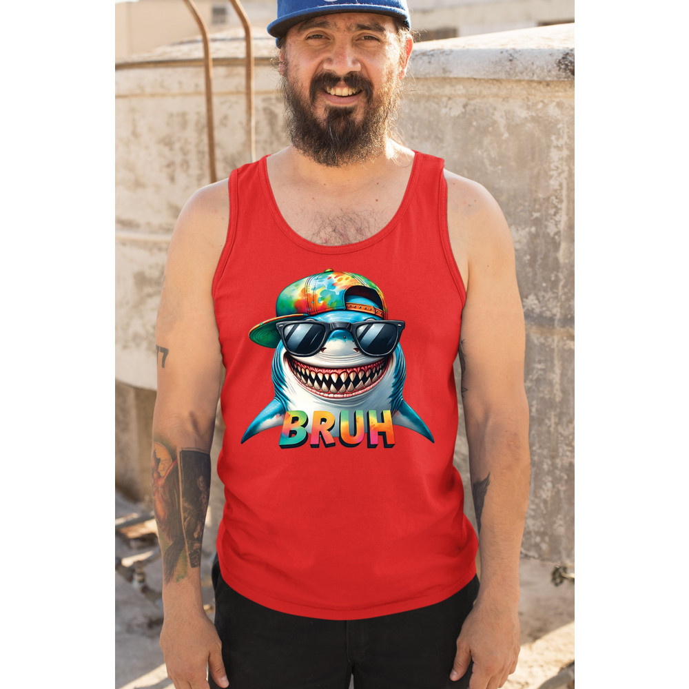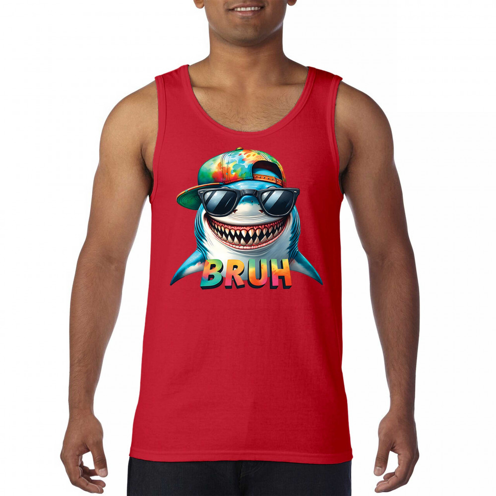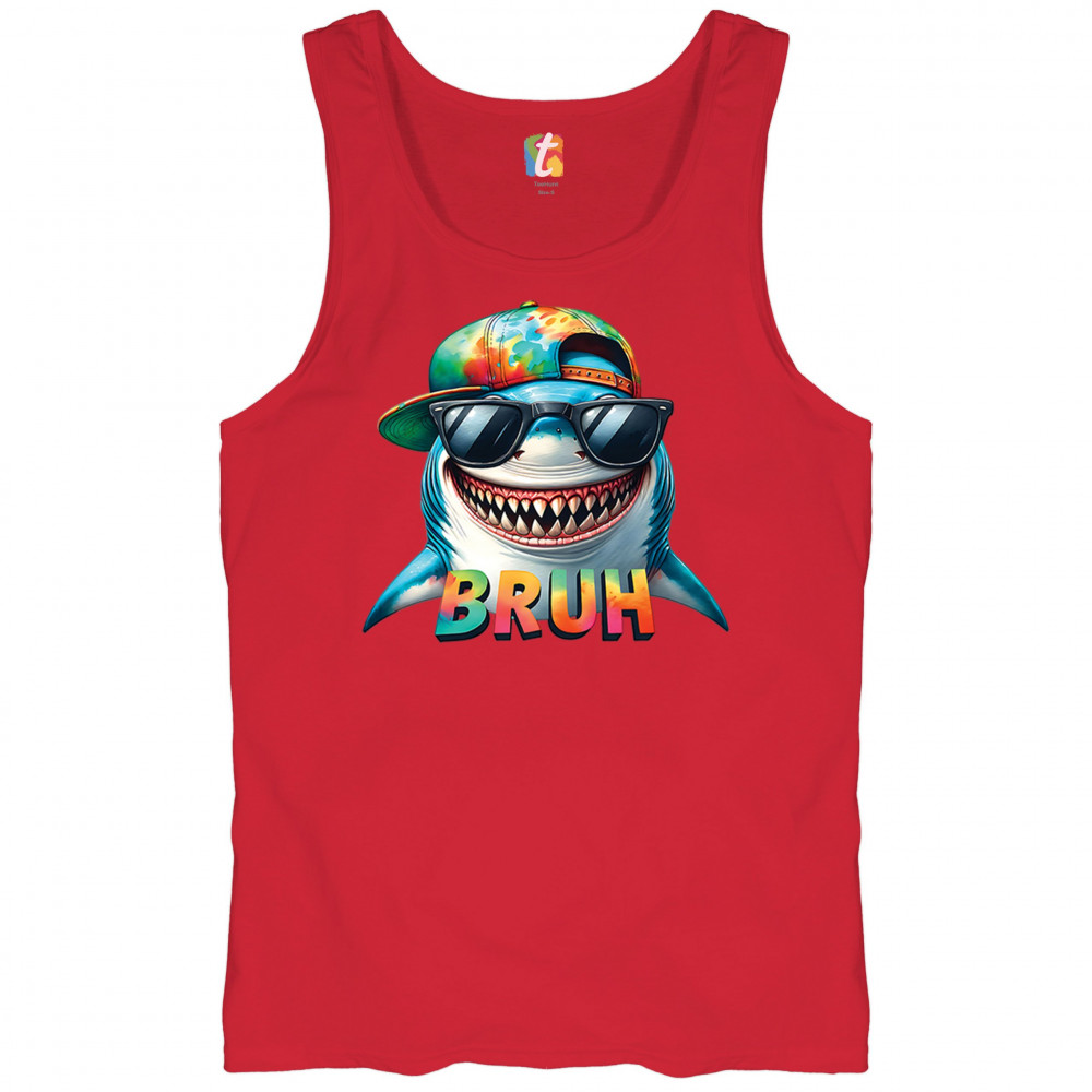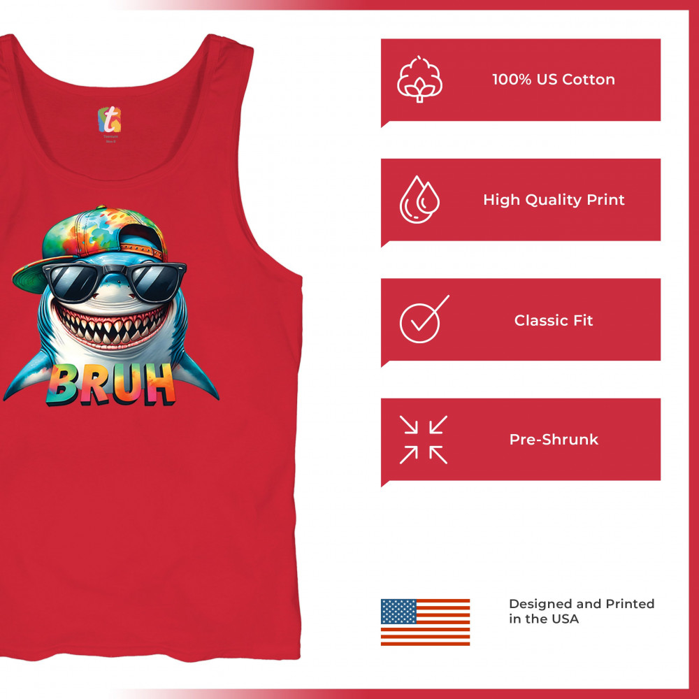 Bruh Shark meme shirt with Gen Z humor, cartoon shark design, summer beach vibes, Sigma Aura, and Italian Brainrot internet humor.