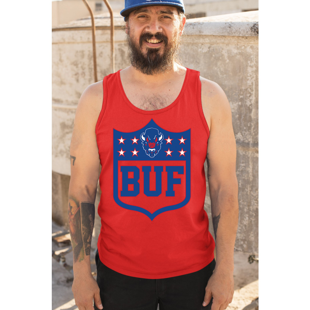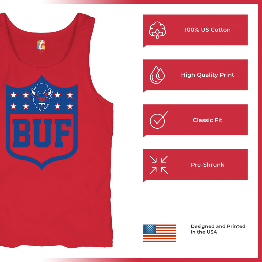 Bold Buffalo bison shield design for game day gear, tailgating, Sunday football, and championship pride in The Queen City.