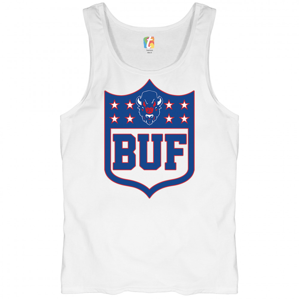 Bold Buffalo bison shield design for game day gear, tailgating, Sunday football, and championship pride in The Queen City.