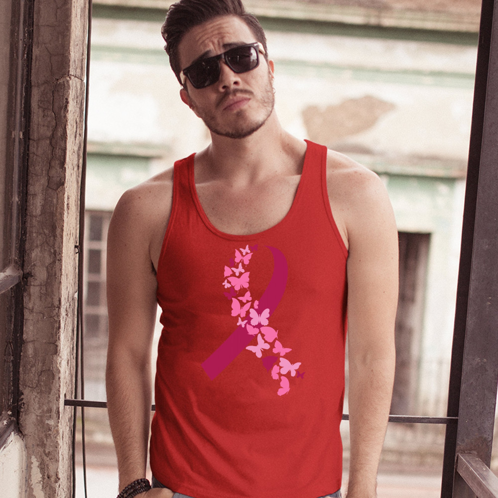 BUTTERFLIES PINK RIBBON tank top breast cancer awareness hope men's top red