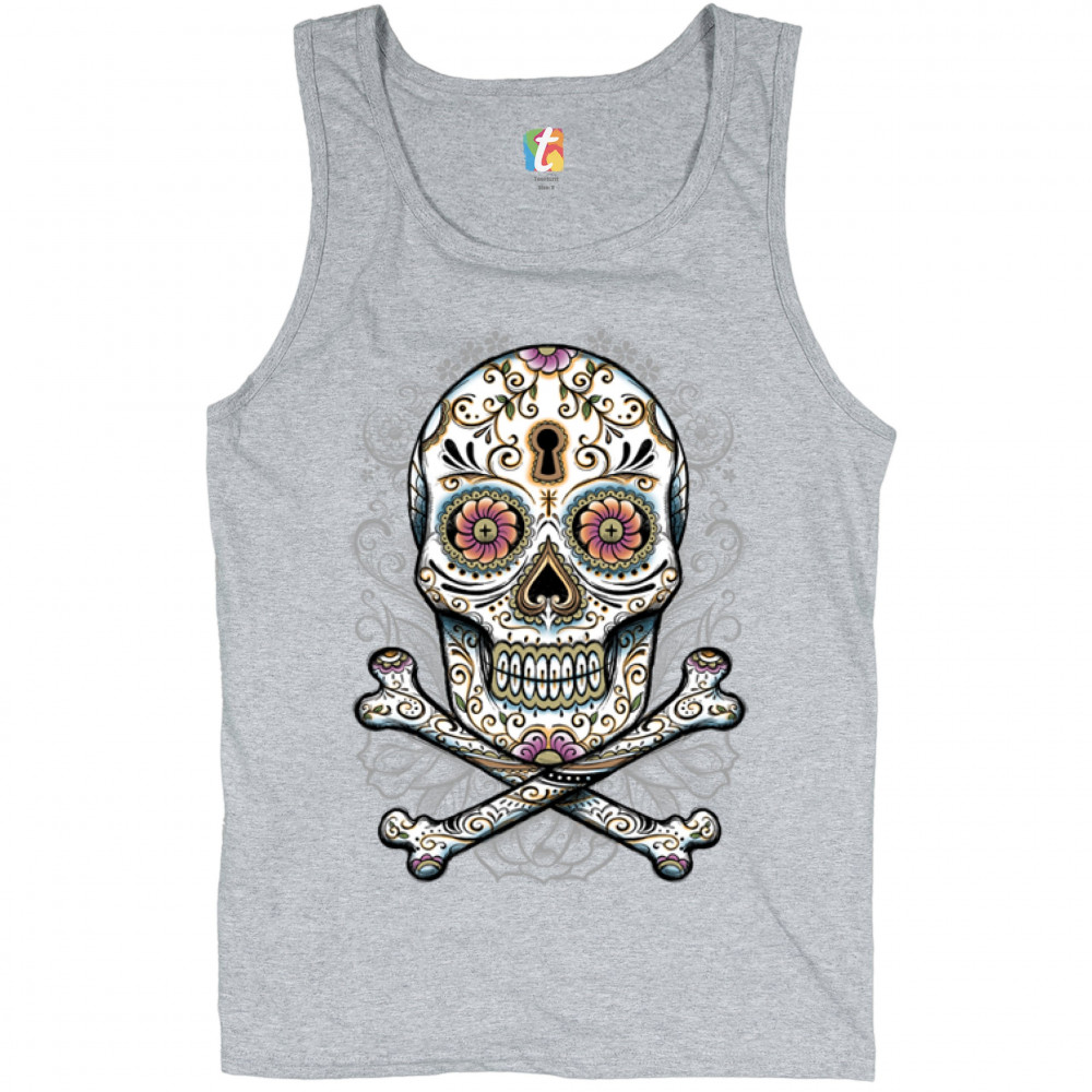 CALAVERA SUGAR SKULL tank top mexican day of the dead dia de muertos men's top gray