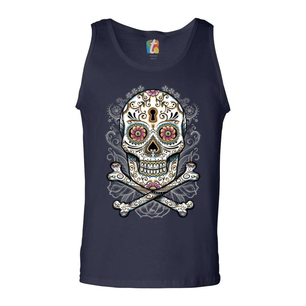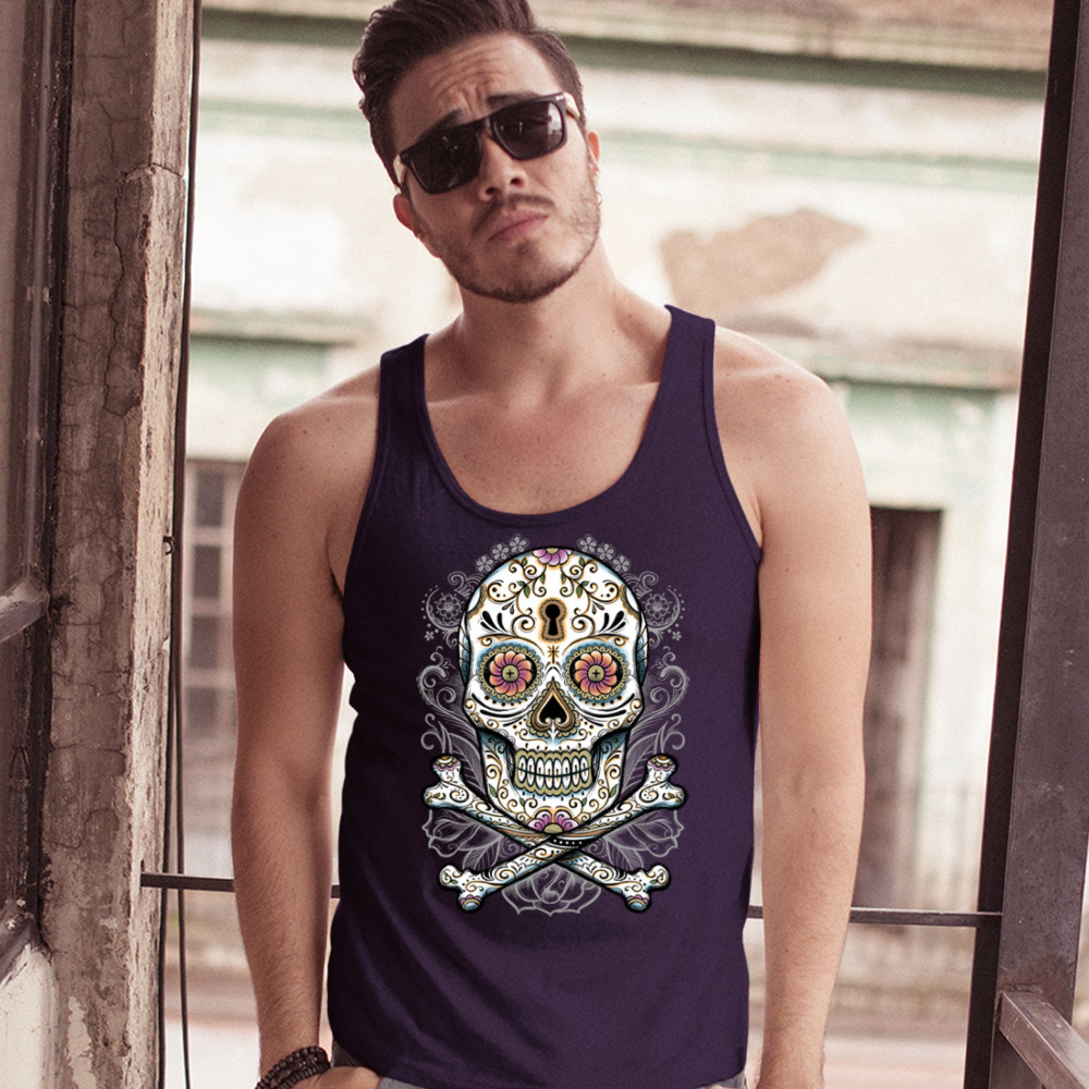 CALAVERA SUGAR SKULL tank top mexican day of the dead dia de muertos men's top navy blue