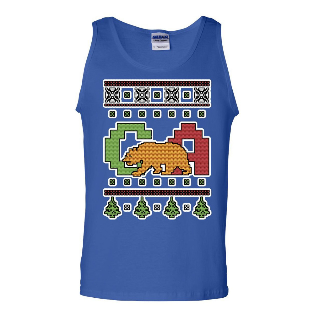 CALIFORNIA REPUBLIC UGLY SWEATER tank top christmas xmas ca bear sleeveless blue