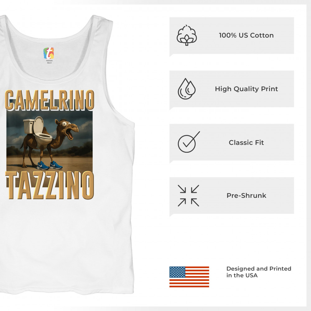 Camelrino Tazzino fuses toilet-core fashion, cursed camel chaos, TikTok meme humor, surreal animal design, and Gen Z absurdity.