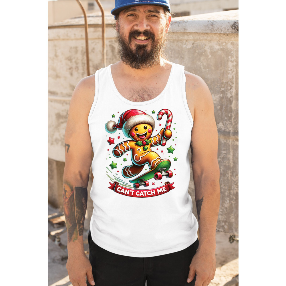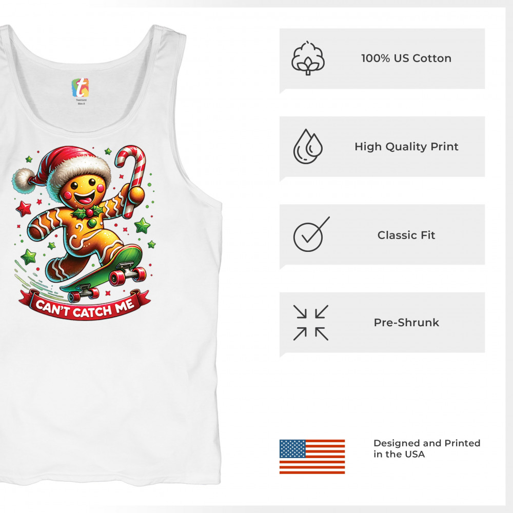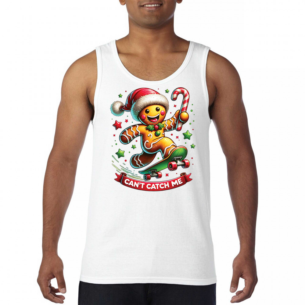 A fun Christmas design featuring a gingerbread character on a skateboard, candy cane in hand, and bright festive colors. Perfect for holiday party outfits, family gatherings, Christmas photos, festive humor fans, stocking stuffer gifting, winter celebrations, and anyone who loves playful seasonal graphics with cheerful personality.