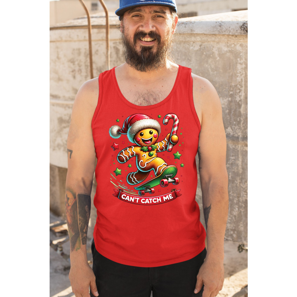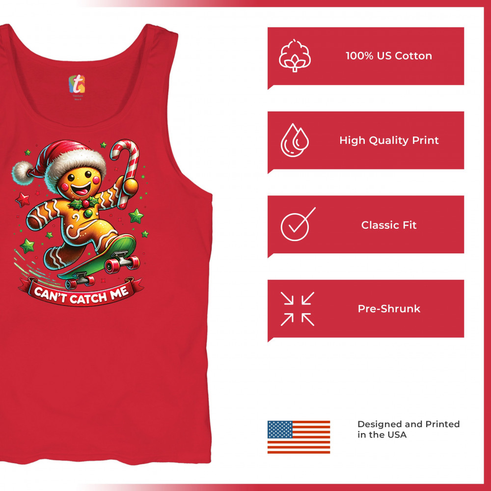 A fun Christmas design featuring a gingerbread character on a skateboard, candy cane in hand, and bright festive colors. Perfect for holiday party outfits, family gatherings, Christmas photos, festive humor fans, stocking stuffer gifting, winter celebrations, and anyone who loves playful seasonal graphics with cheerful personality.