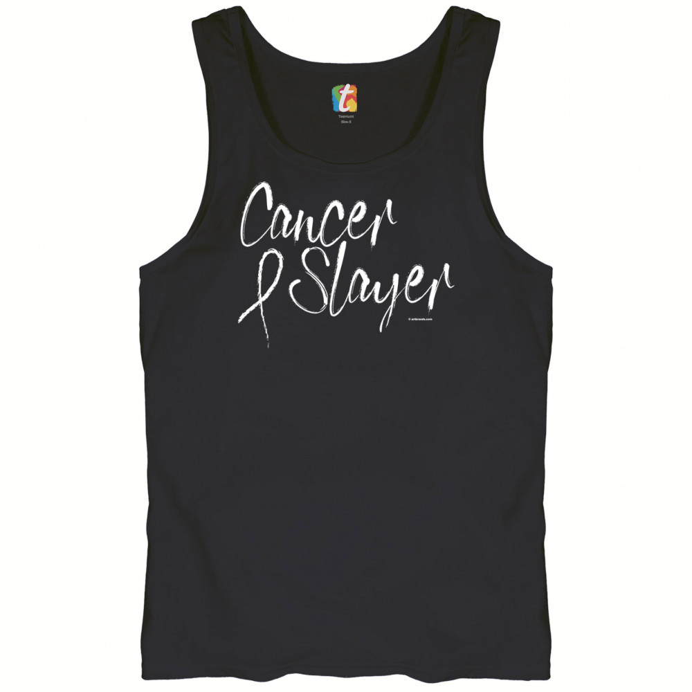 A print featuring a ribbon and saying "Cancer Slayer". Wear it to spread awareness abouth the disease and support a person you know who is battling it at the moment.