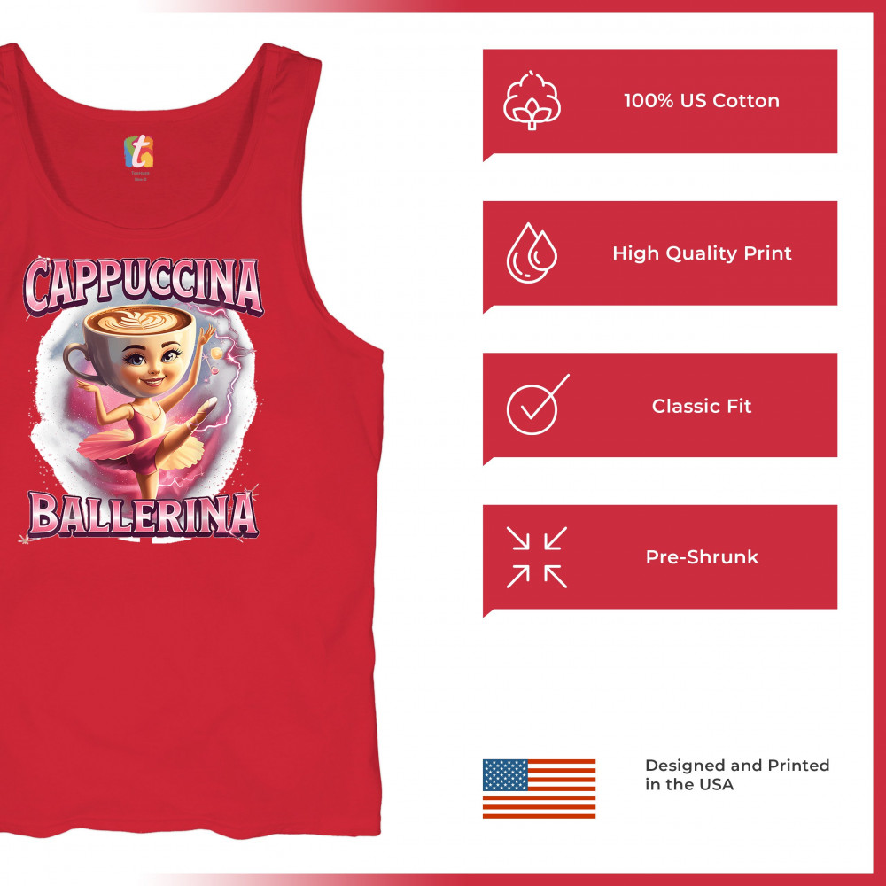 Cappuccina Ballerina is your perfect mix of meme chaos and coffee-core fashion. This absurd design features a ballet-dancing cappuccino head with weirdcore flair and Gen Z humor. A surreal blend of ironic internet fashion, TikTok trends, and espresso madness—ideal for meme lovers, caffeine addicts, and viral absurdists alike.
