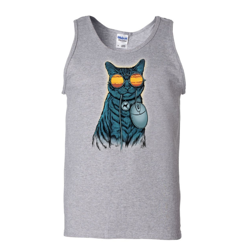 CAT AND MOUSE tank top funny cat kitten hacker antidog anonymouse sleeveless gray
